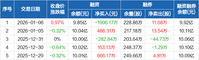 青农商行:融资净偿还1996.17万元,融资余额9.85亿元(01-06)