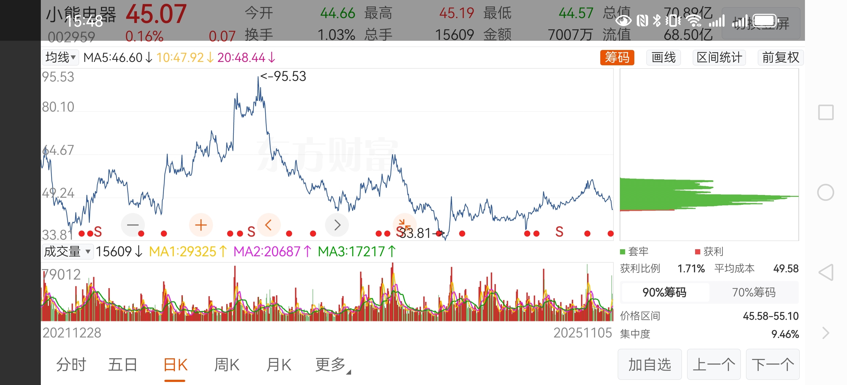 $小熊电器(SZ002959)$ 这股已经没有获利盘了,抄底风险可控