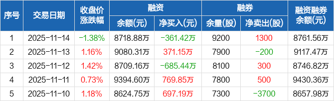 小熊电器:融资净偿还361.42万元,融资余额8718.88万元(11-14)