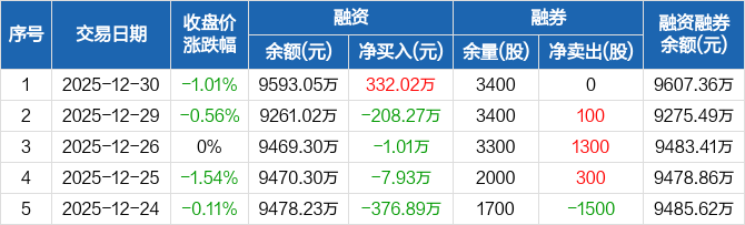小熊电器:融资净买入332.02万元,融资余额9593.05万元(12-30)