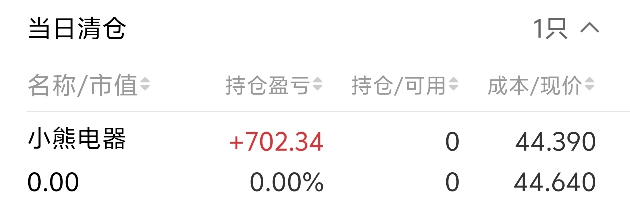 $小熊电器(SZ002959)$ 回来两天先走了,今天44.70跑的。你收个小阴线也好,你干嘛收个十字星,头大。