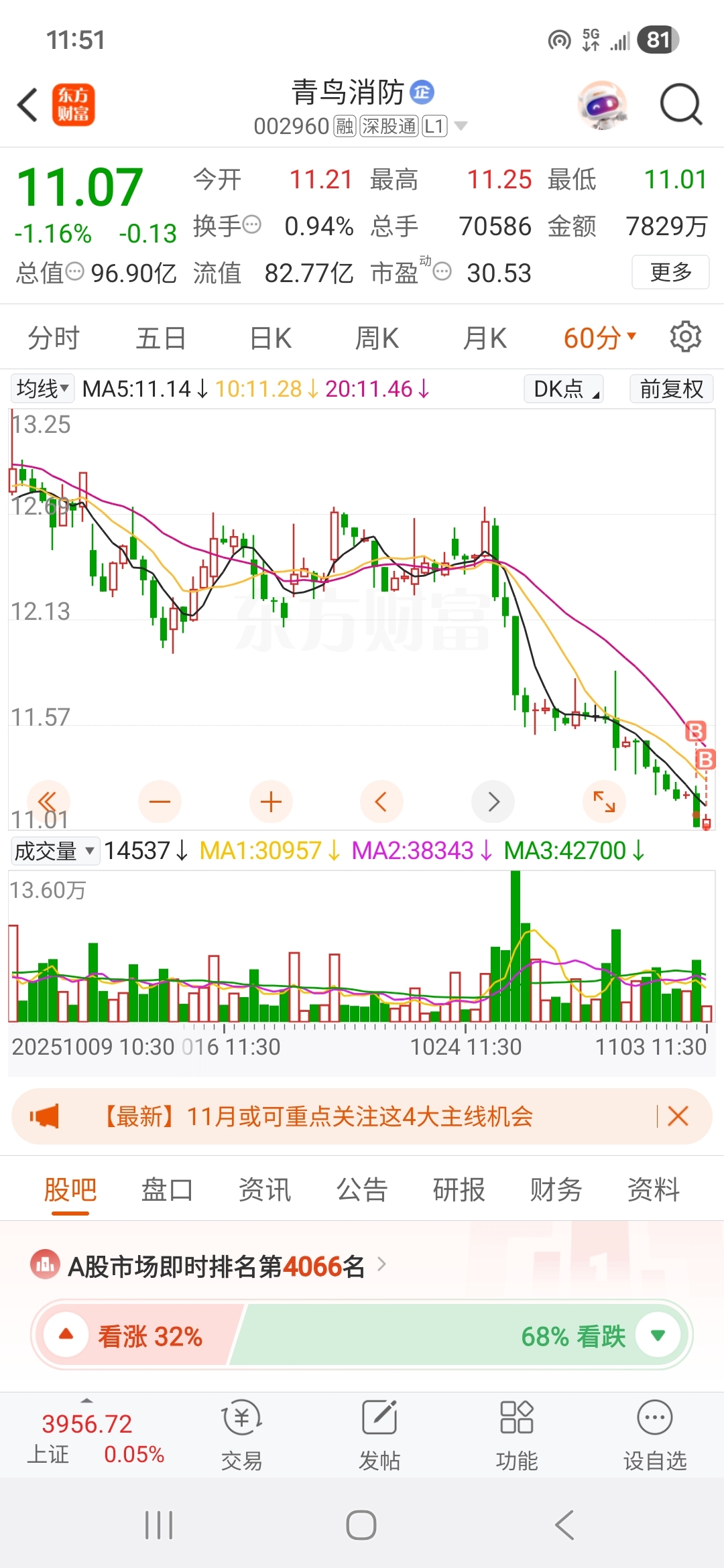 挂单11.00和10.99一直有人和我抢单,比我挂高2分钱,你们属苟的吗被迫11