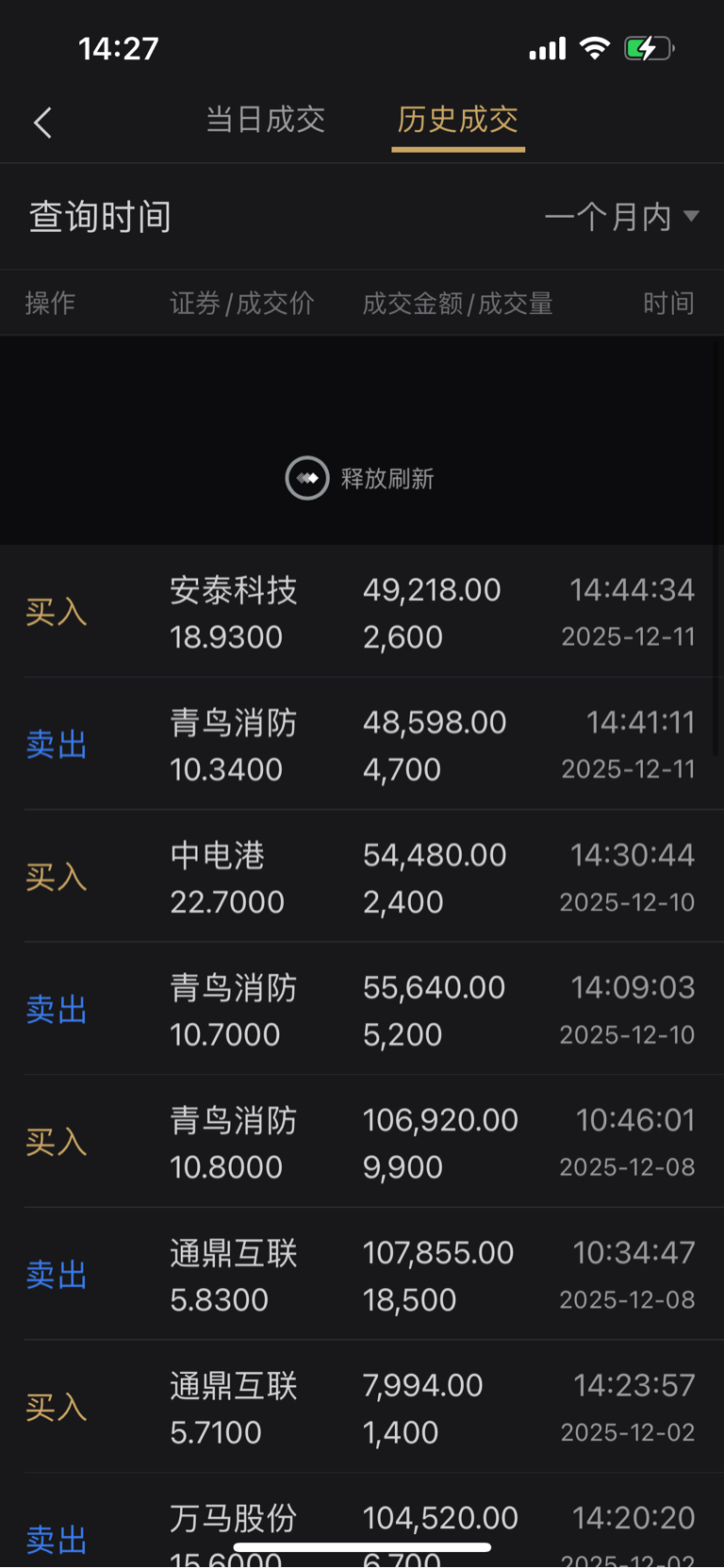 这股真的没得玩,昨天亏4个多点割了,换了安泰科技,今天赚了9个多点出了,把亏的赚了回来又赚了近5个点。