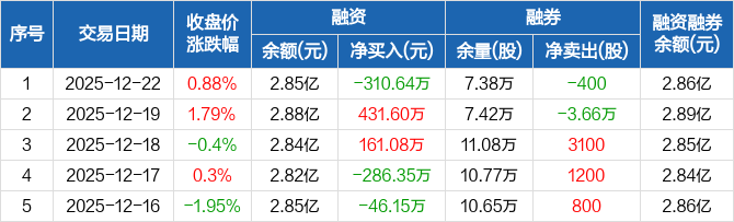 青鸟消防:融资净偿还310.64万元,融资余额2.85亿元(12-22)