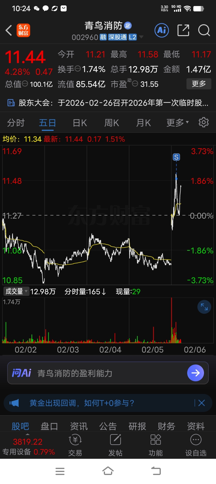 $青鸟消防(SZ002960)$ 在青鸟买了3次,挣了10多个点,可以可以