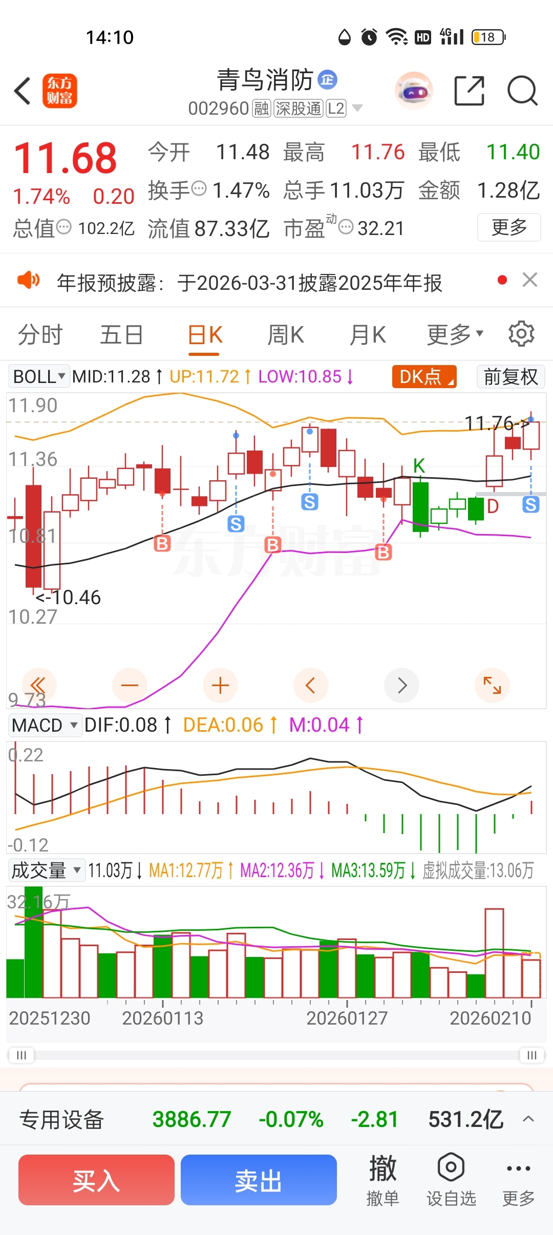我早上看的步林上轨记得是11.69的,所以我才委托11.7想做差价的。他现在怎么