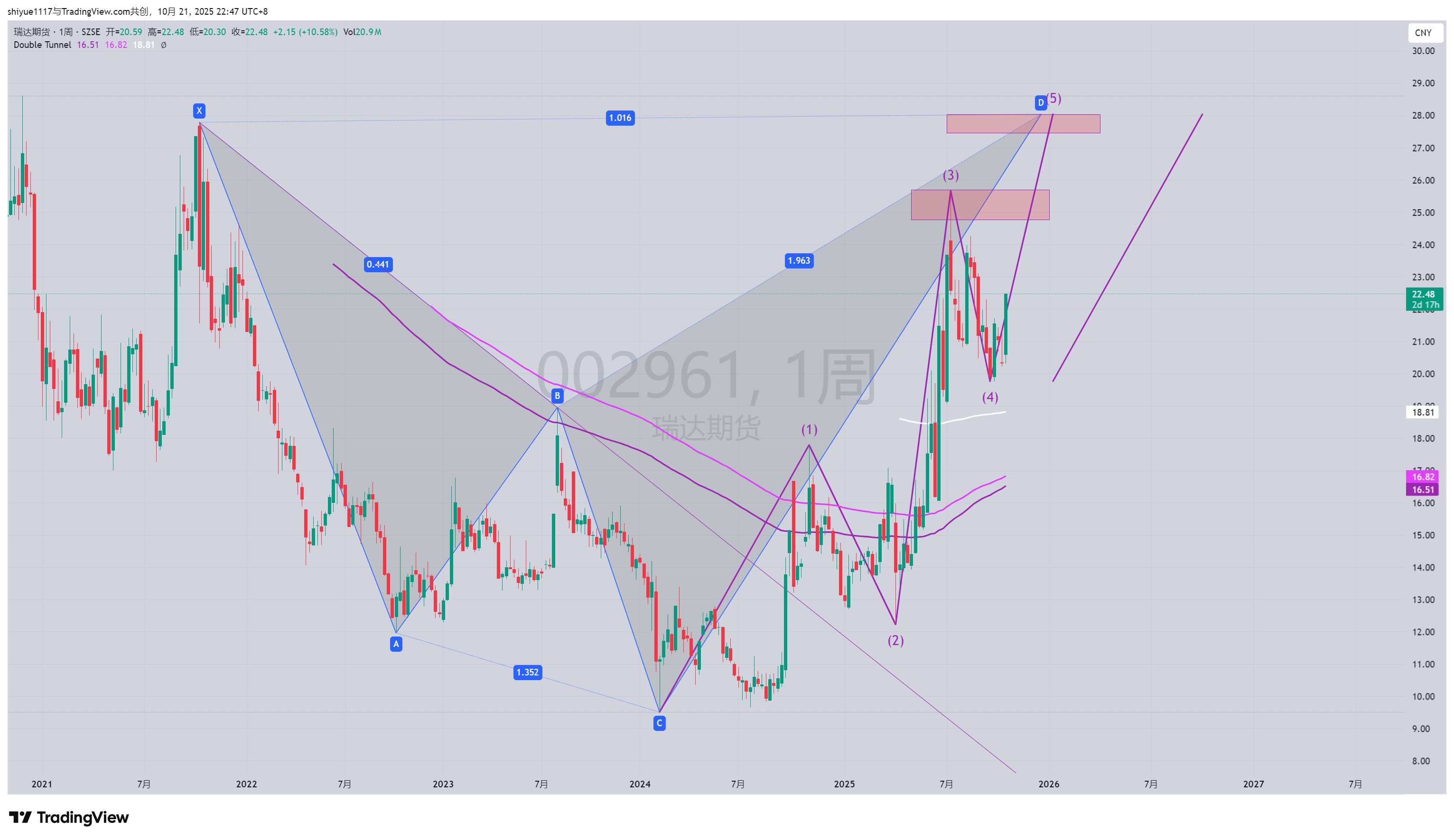 股价在鲨鱼886(浪3)遇到阻力进行调整后,当前疑似出现浪5雏形,如五浪结构成立,则股价会造成28元目标(此处基本代表行情结束)