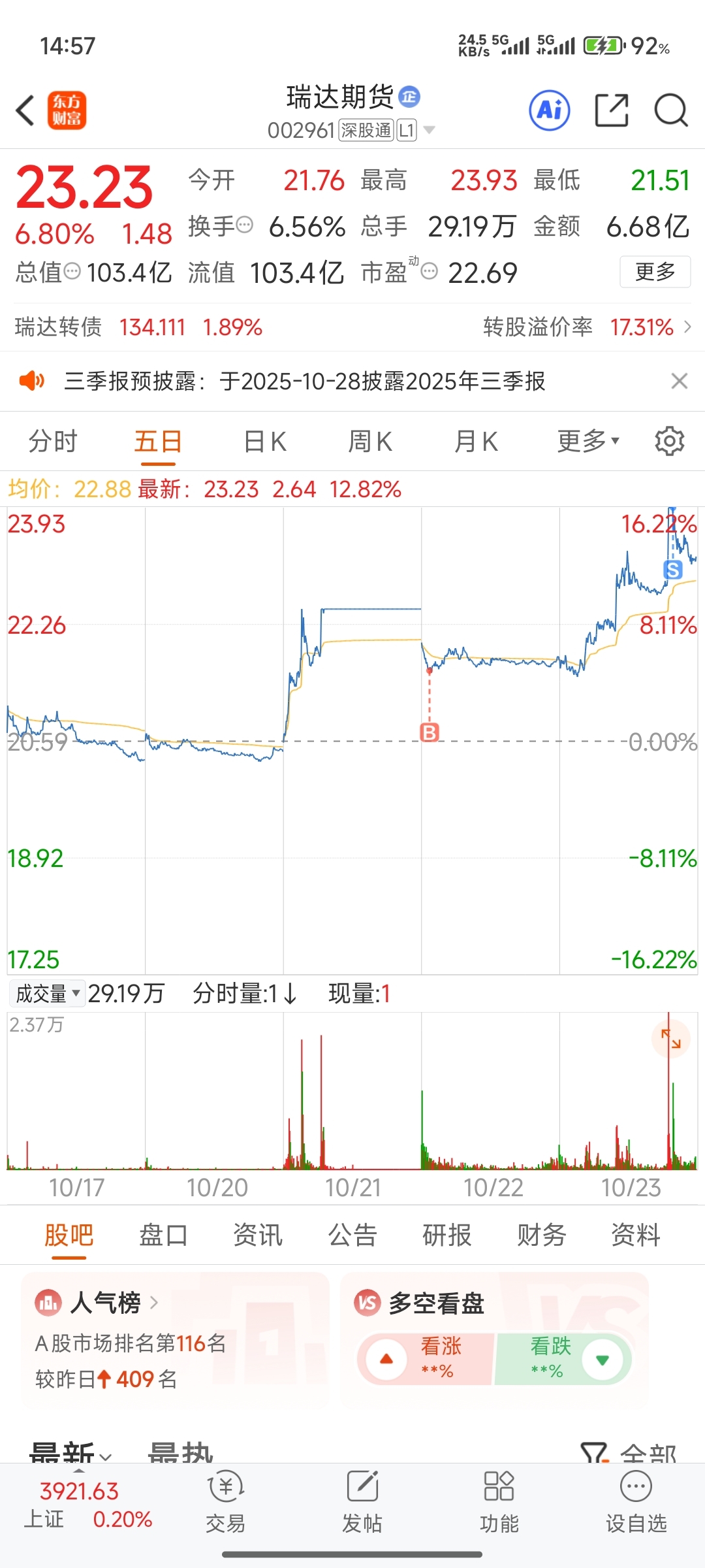 $瑞达期货(SZ002961)$ see you