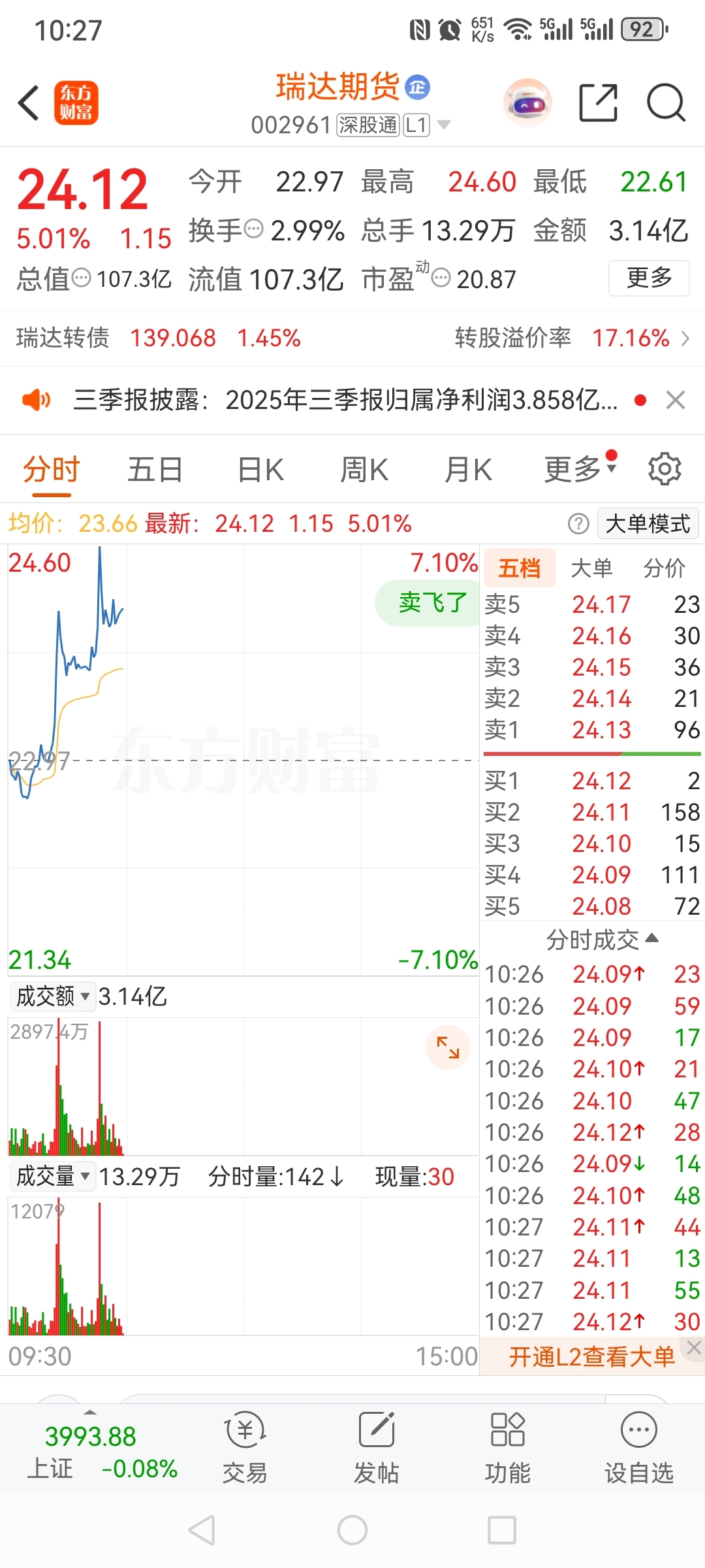 $瑞达期货(SZ002961)$ 这图形至少三板