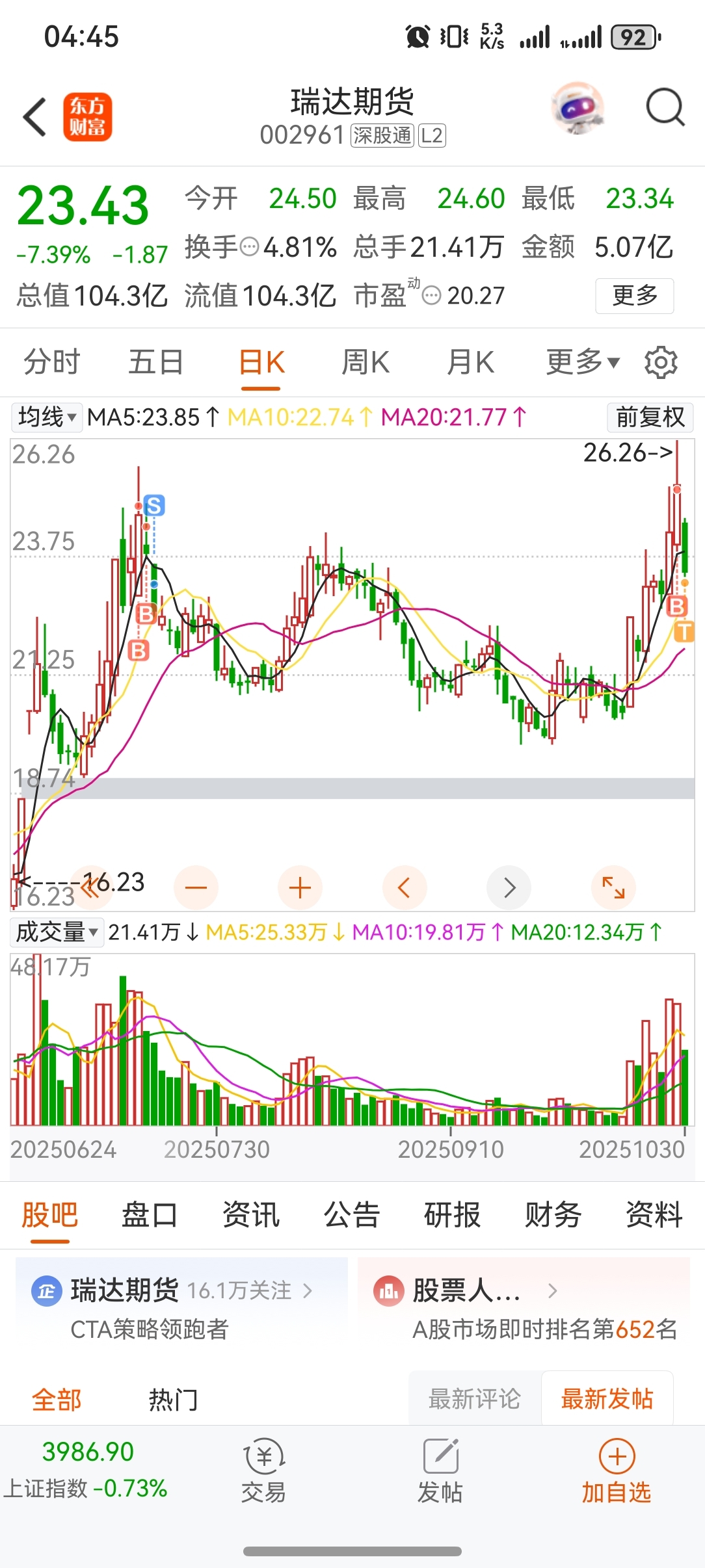 温馨提示: 1.根据《证券法》规定,禁止编造、传播虚假信息或者误导性信息,扰乱证券市场;2.用户在本社区发表的所有资料、言论等仅代表个人观点,与本网站立场无关,不对您构成任何投资建议。用户应基于自己的独立判断,自行决定证券投资并承担相应风险。《东方财富社区管理规定》