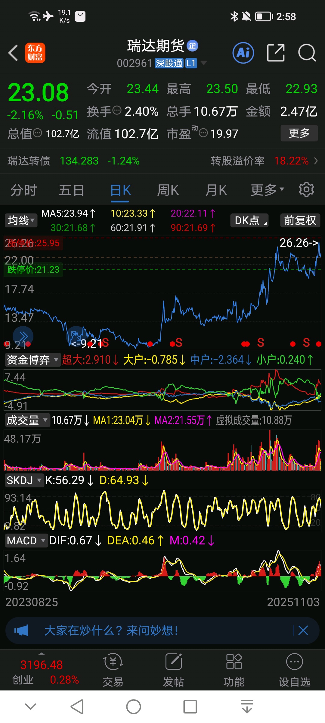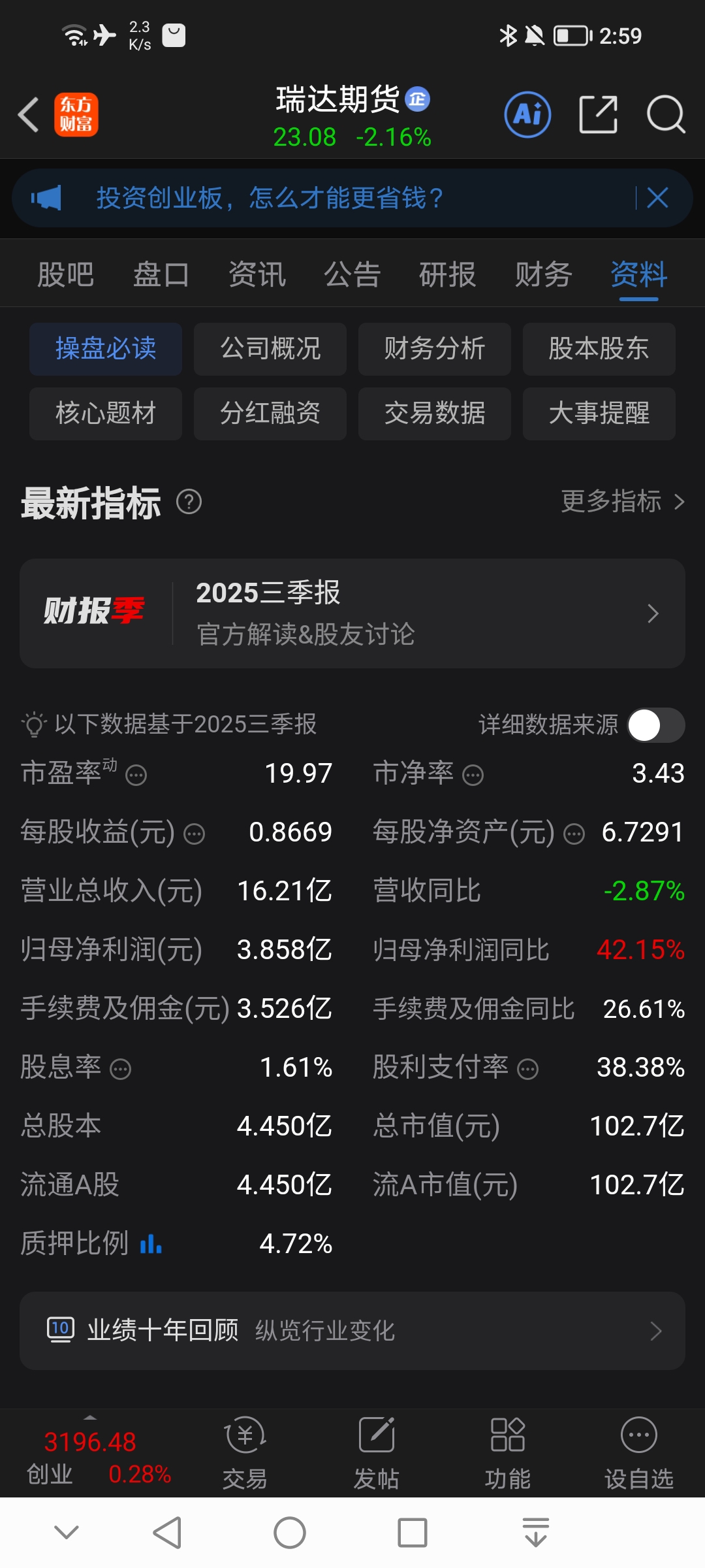瑞达期货:期货公司不怎么赚钱啊,永安是单独上市最大的期货公司,瑞达期货是估值最低