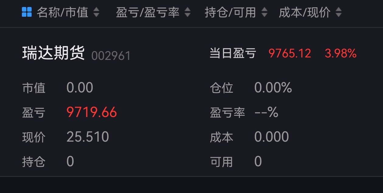 $瑞达期货(SZ002961)$ 我先撤,留下的继续发财