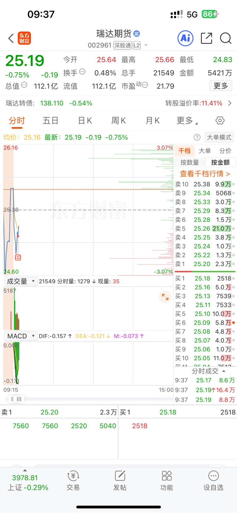 $瑞达期货(SZ002961)$ 明少加仓瑞达期货