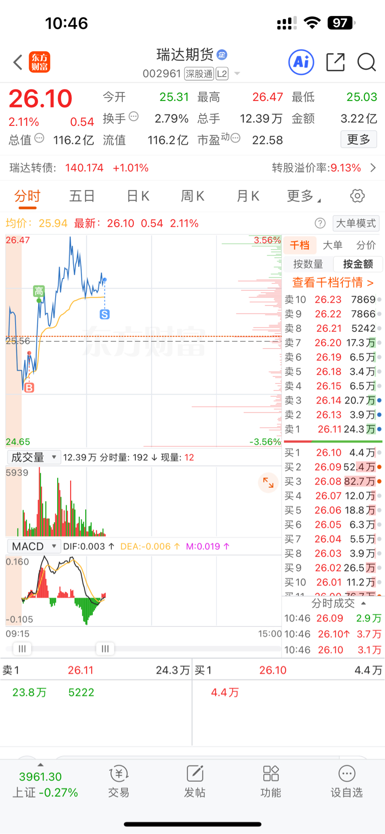 $瑞达期货(SZ002961)$ 明少做T瑞达