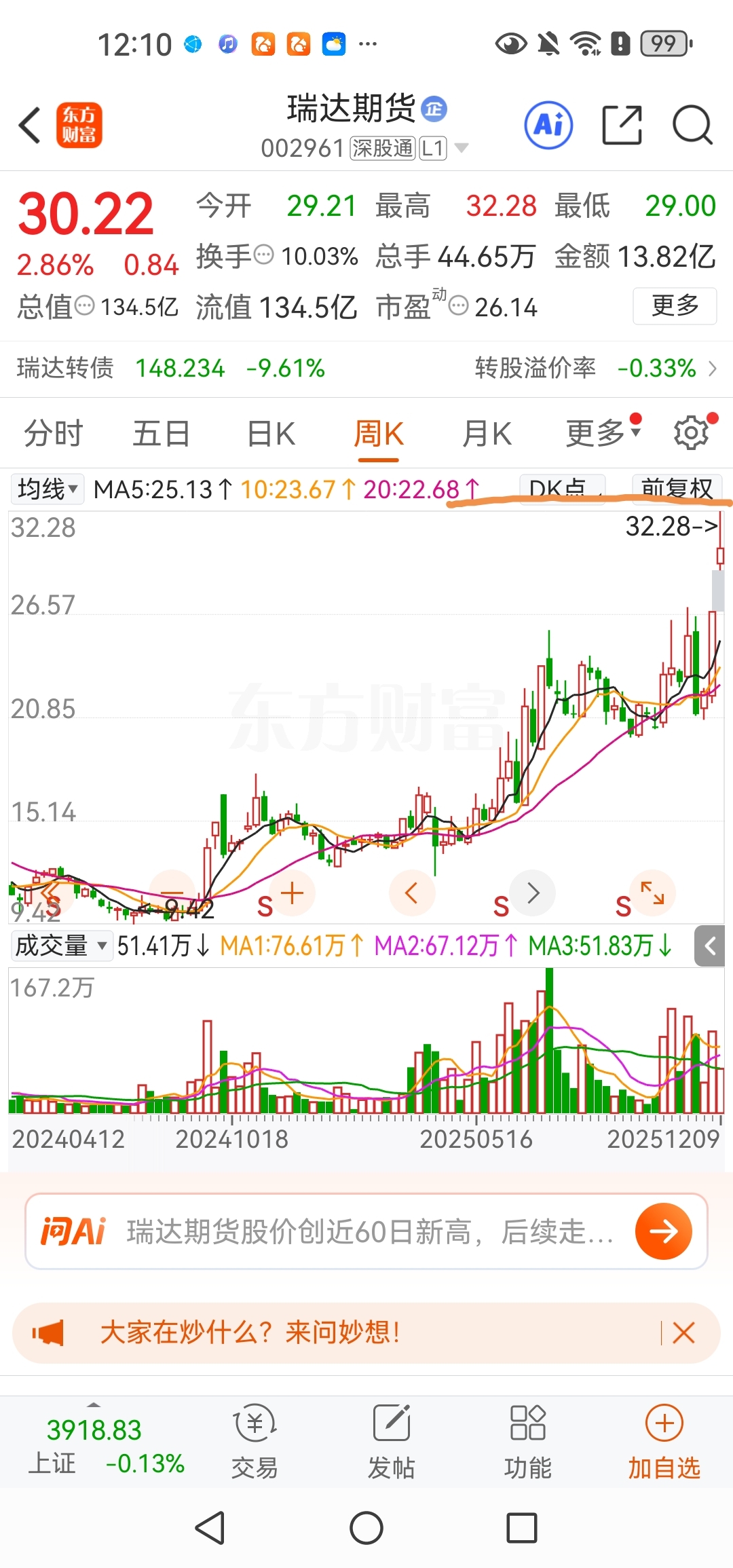 瑞达期货这个位置休息一下继续高歌猛进,现在还是第一阶段,瑞达期货带头冲锋,第二阶段是券商板块带头冲锋。第三阶段是金融系爆发,这就是牛市初期。