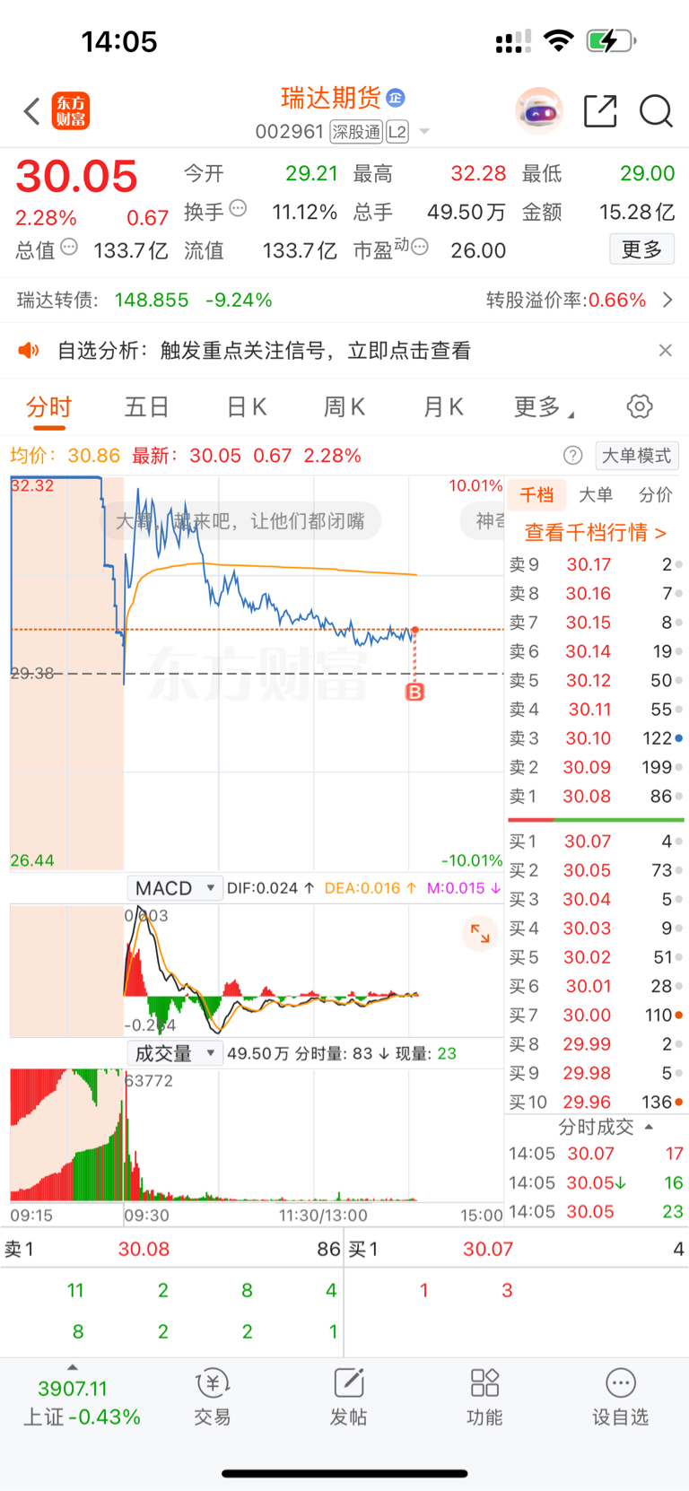 $瑞达期货(SZ002961)$ 买入1/3