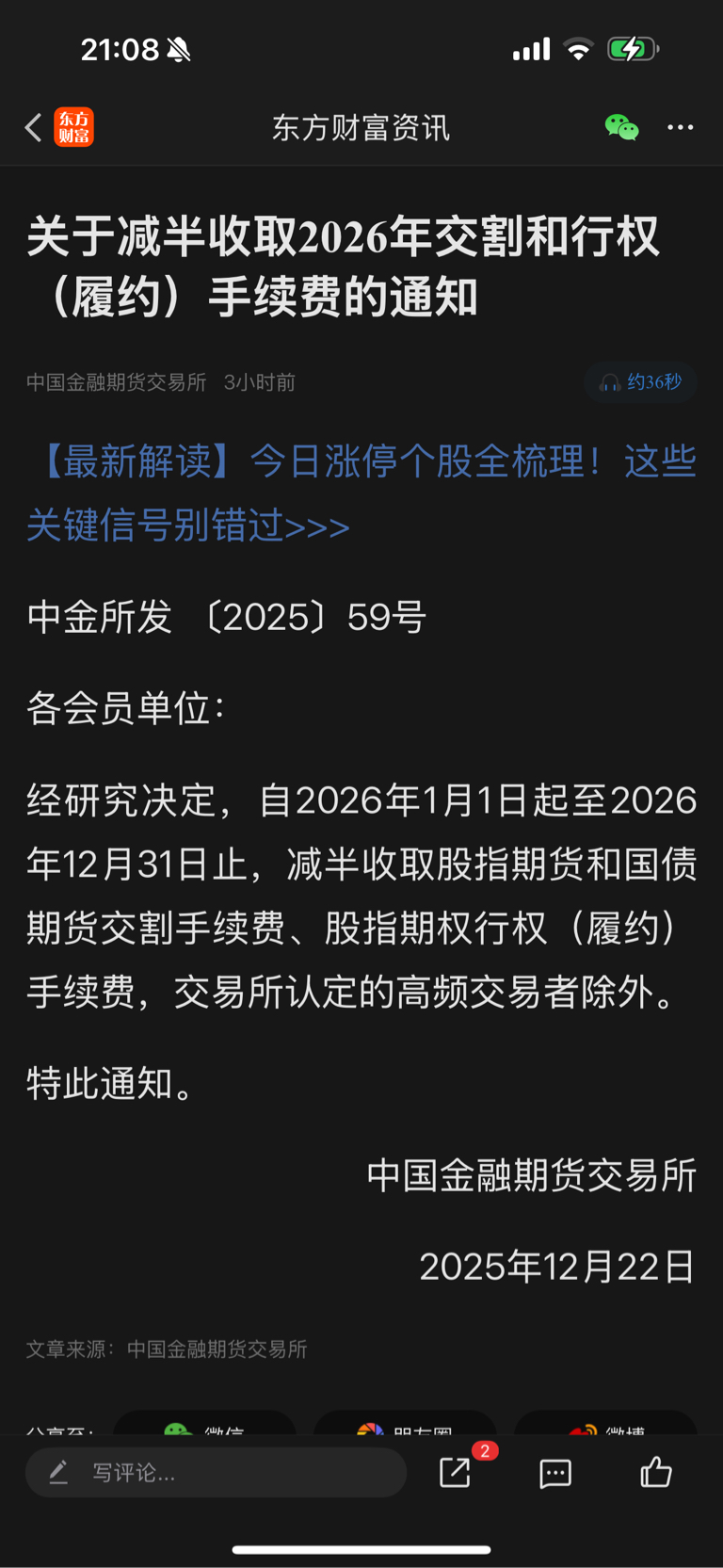 $瑞达期货(SZ002961)$ 自2026年1月1日起至2026年12月31日止,减半收取股指期货和国债期货交割手续费、股指期权行权(履约)手续费,交易所认定的高频交易者除外