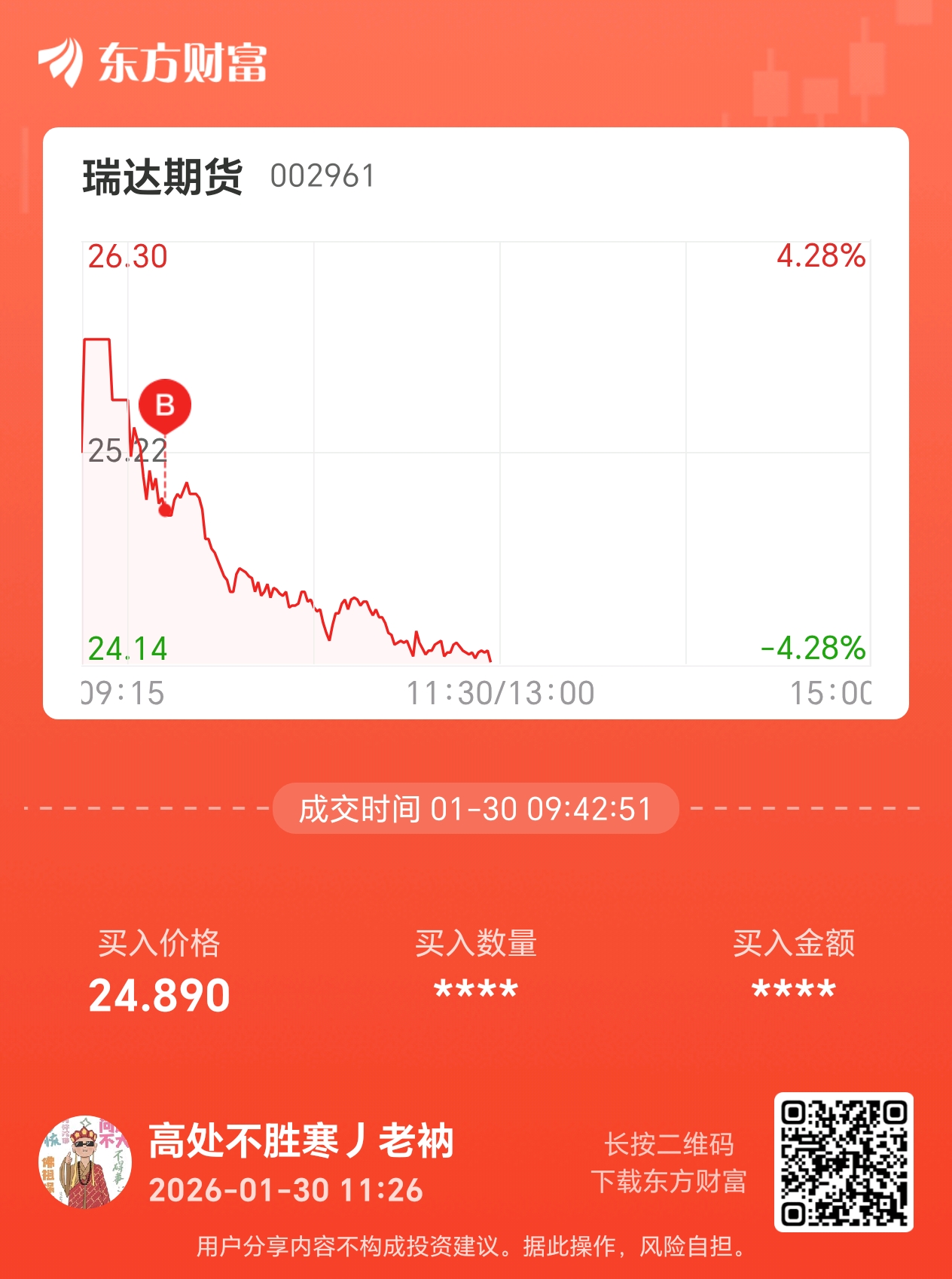 温馨提示: 1.根据《证券法》规定,禁止编造、传播虚假信息或者误导性信息,扰乱证券市场;2.用户在本社区发表的所有资料、言论等仅代表个人观点,与本网站立场无关,不对您构成任何投资建议。用户应基于自己的独立判断,自行决定证券投资并承担相应风险。《东方财富社区管理规定》