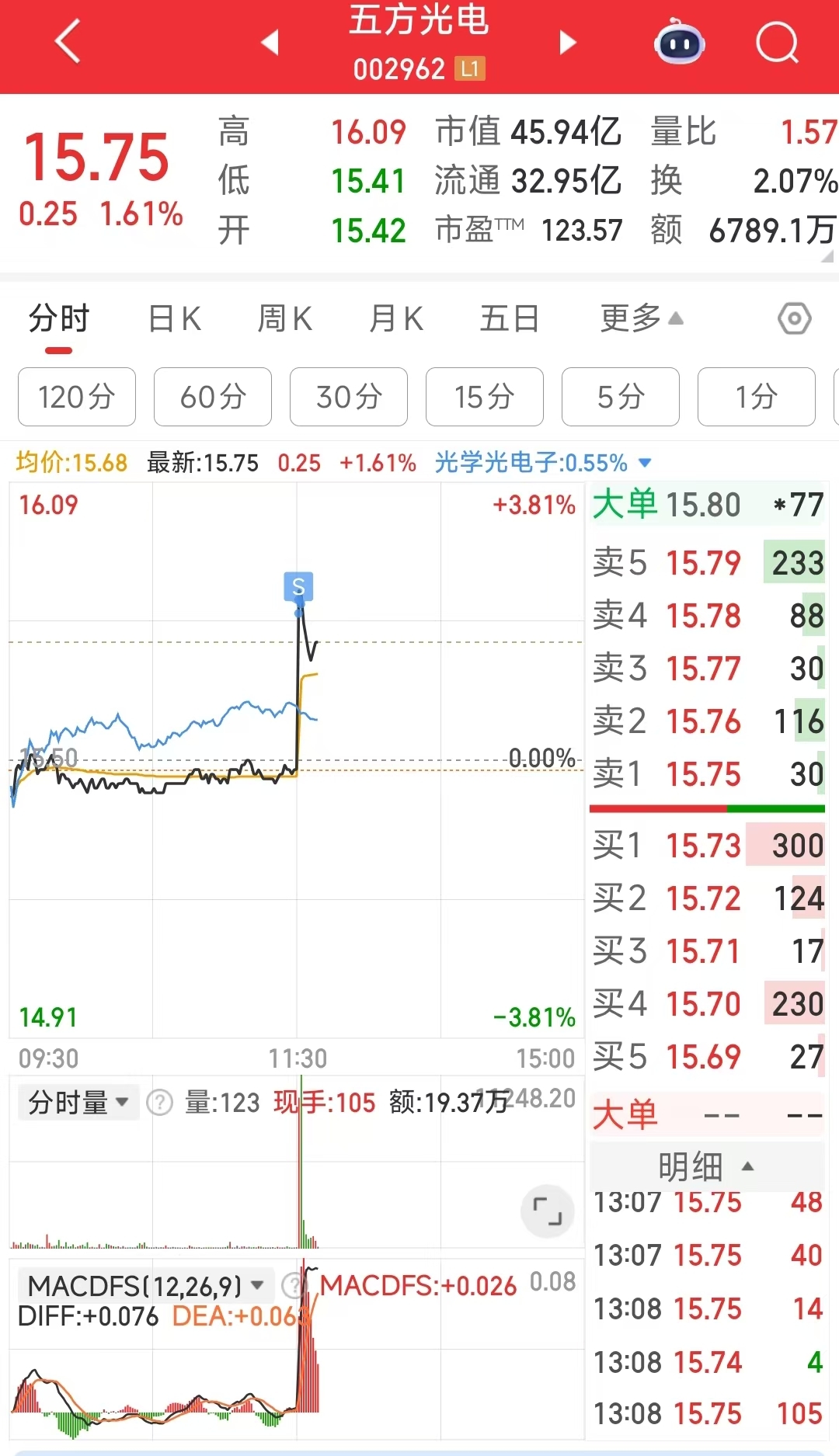 $五方光电(SZ002962)$ 始终给五方留了一成仓位,去年年底跑输大盘40%以为会补涨,结果一年过去了别说去年的40%了,今年又跑输大盘30%,不耗了,清仓了!去年924行情到现在已经一年多了,如今4000点了,宁愿留点仓位买指数etf也不在这浪费了仓位!