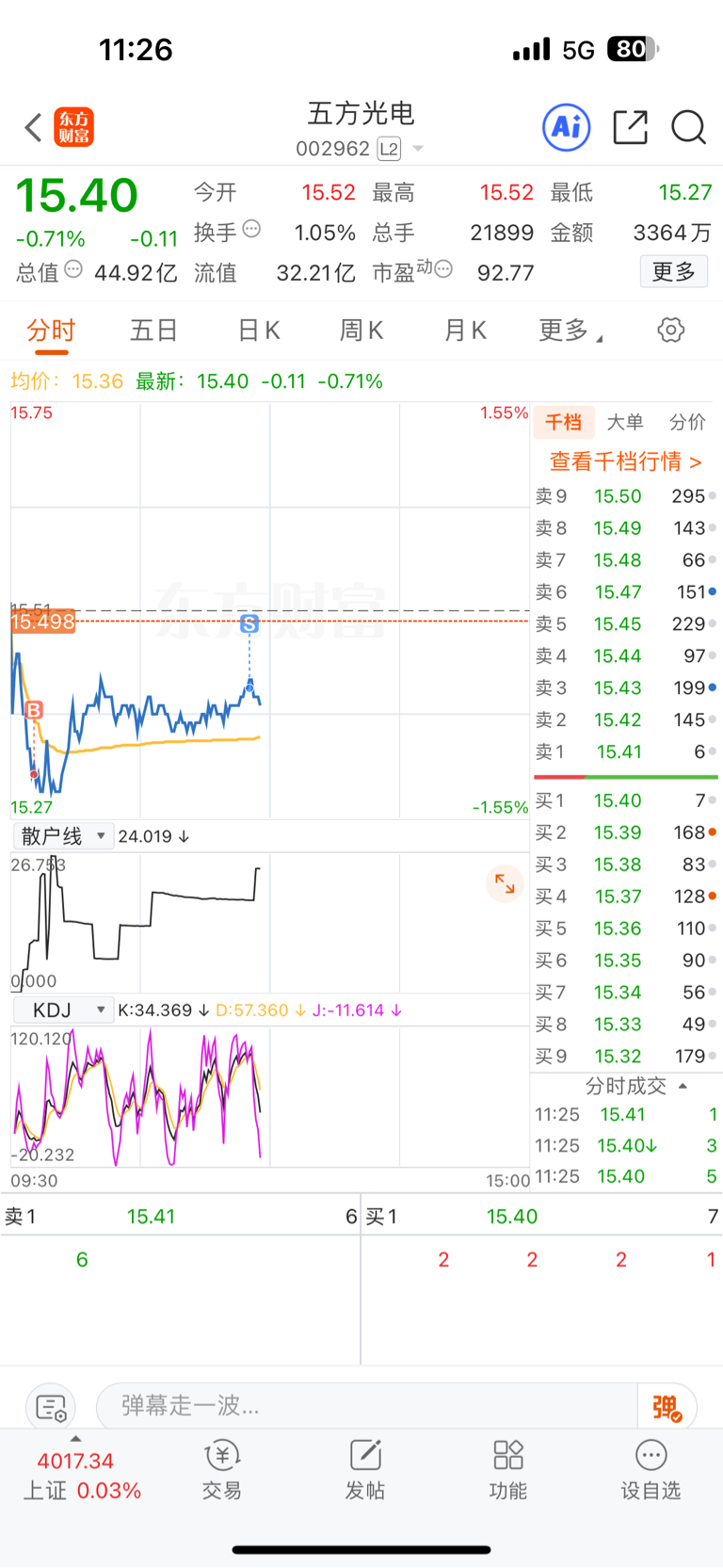$五方光电(SZ002962)$ #炒股日记# 这次进来获利没出,被套住了,不想割肉,慢慢熬吧。