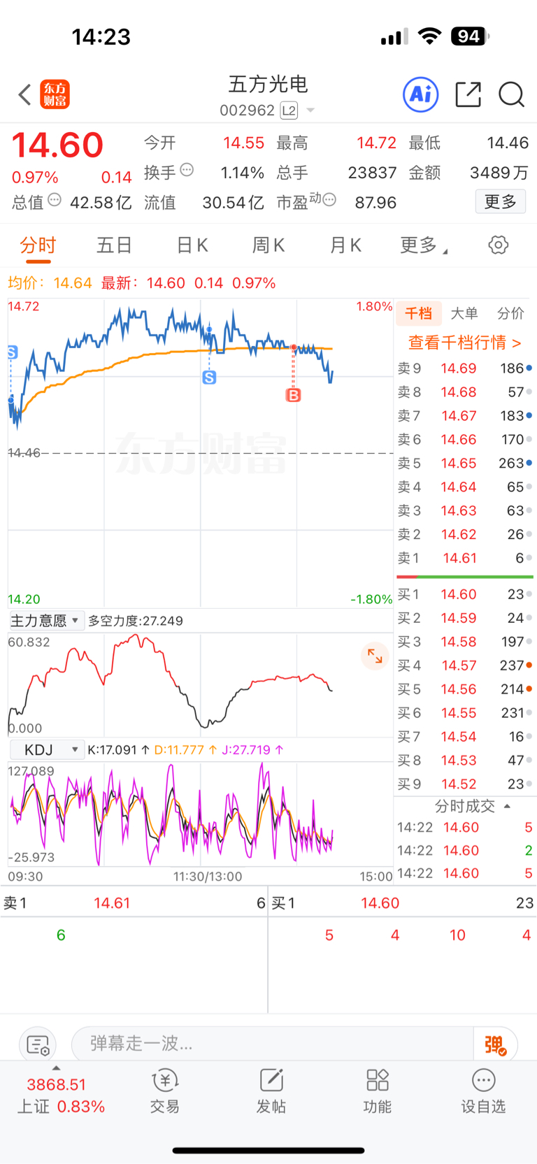 $五方光电(SZ002962)$ #周度策略# 想上岸,越折腾越失望。