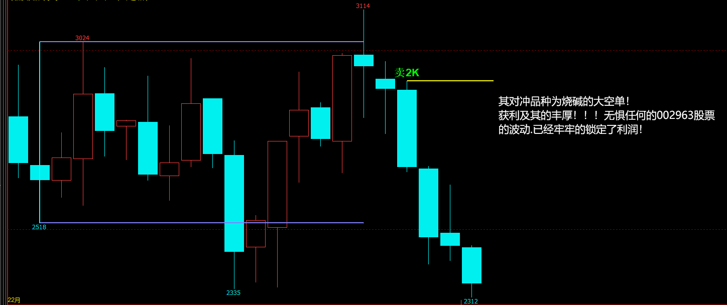 烧碱我们600手,每手赚600来点!1手30吨,大赚空单!早就锁定了利润,你的股价被锁定的利润对冲了几倍,你跌没有了价格成为负数几倍,我们均是盈利!小主力,你加油啊!哈哈哈