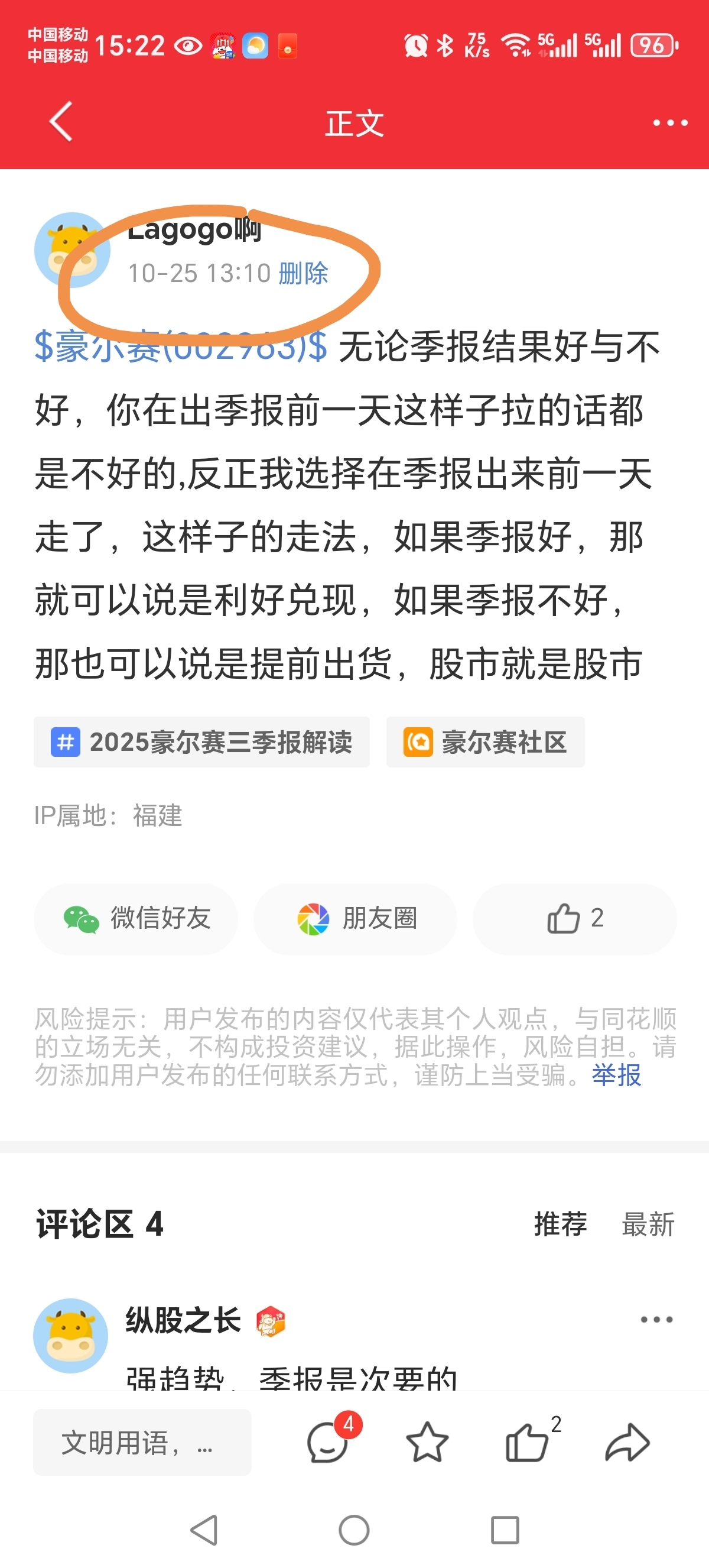 温馨提示: 1.根据《证券法》规定,禁止编造、传播虚假信息或者误导性信息,扰乱证券市场;2.用户在本社区发表的所有资料、言论等仅代表个人观点,与本网站立场无关,不对您构成任何投资建议。用户应基于自己的独立判断,自行决定证券投资并承担相应风险。《东方财富社区管理规定》