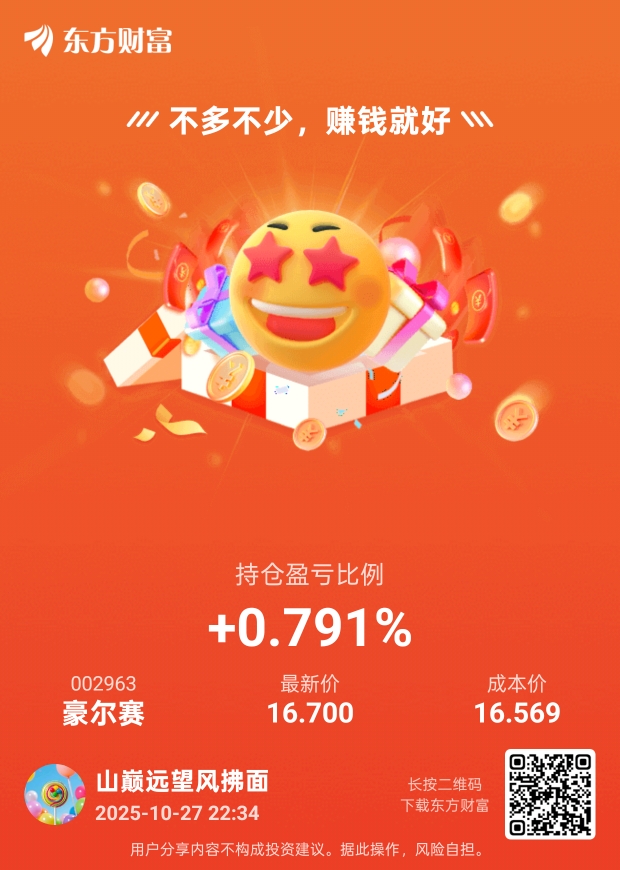 $豪尔赛(SZ002963)$ 上午开盘没时间看盘,果然贪心就会失去利润,不贪心又怕错过机会,so hard
