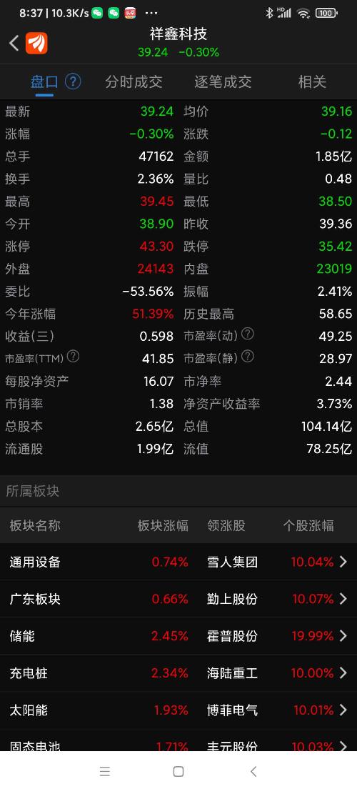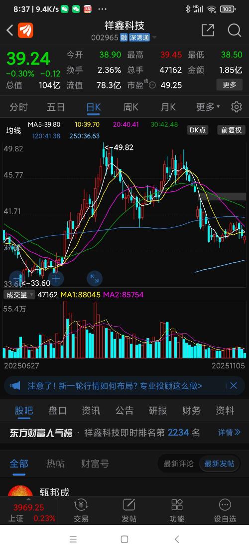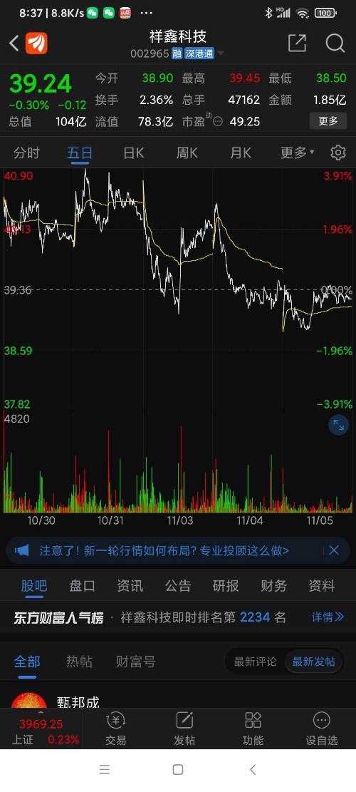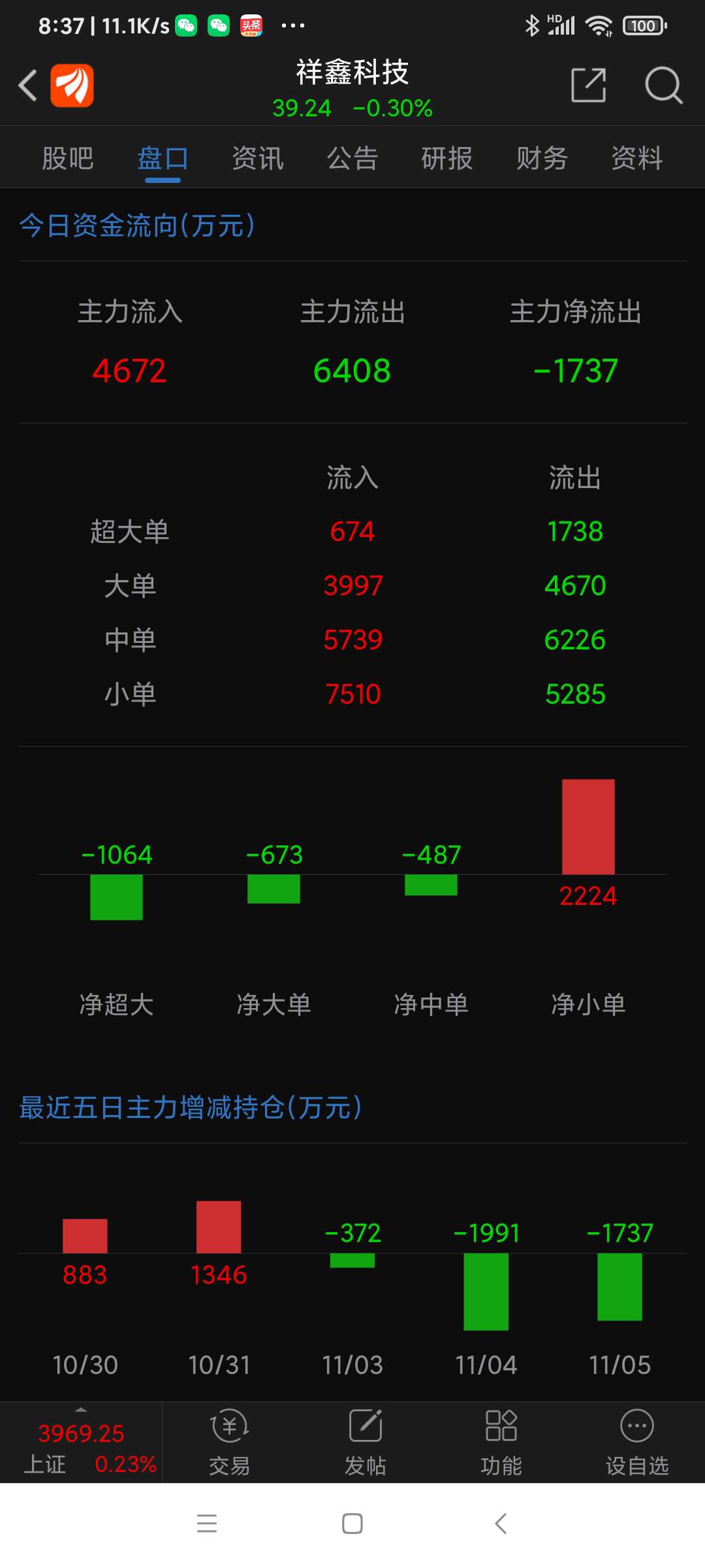 祥鑫科技昨日表现,连跌三天,展望今日,不涨也得涨!