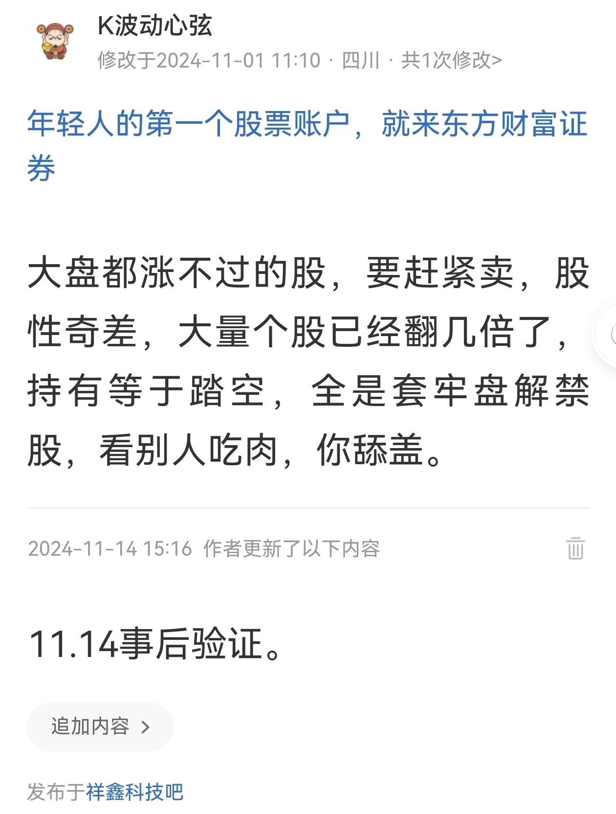 大盘结结实实上涨了一千点,祥鑫股价还在一年前,一年前发的帖子,现在实实在在应验,