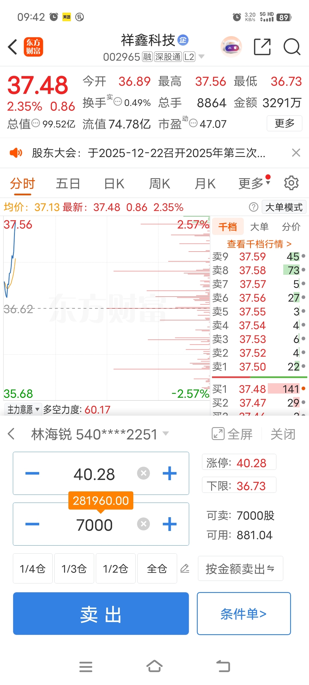 $祥鑫科技(SZ002965)$ 没事天天设涨停卖