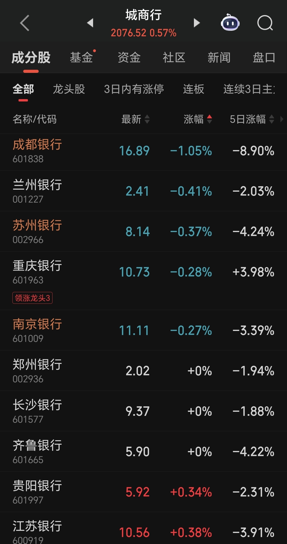 城商行里排名倒数的,三季报还没发布的,就是下一个成都银行