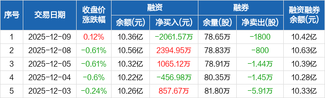 苏州银行:融资净偿还2061.57万元,融资余额10.36亿元(12-09)