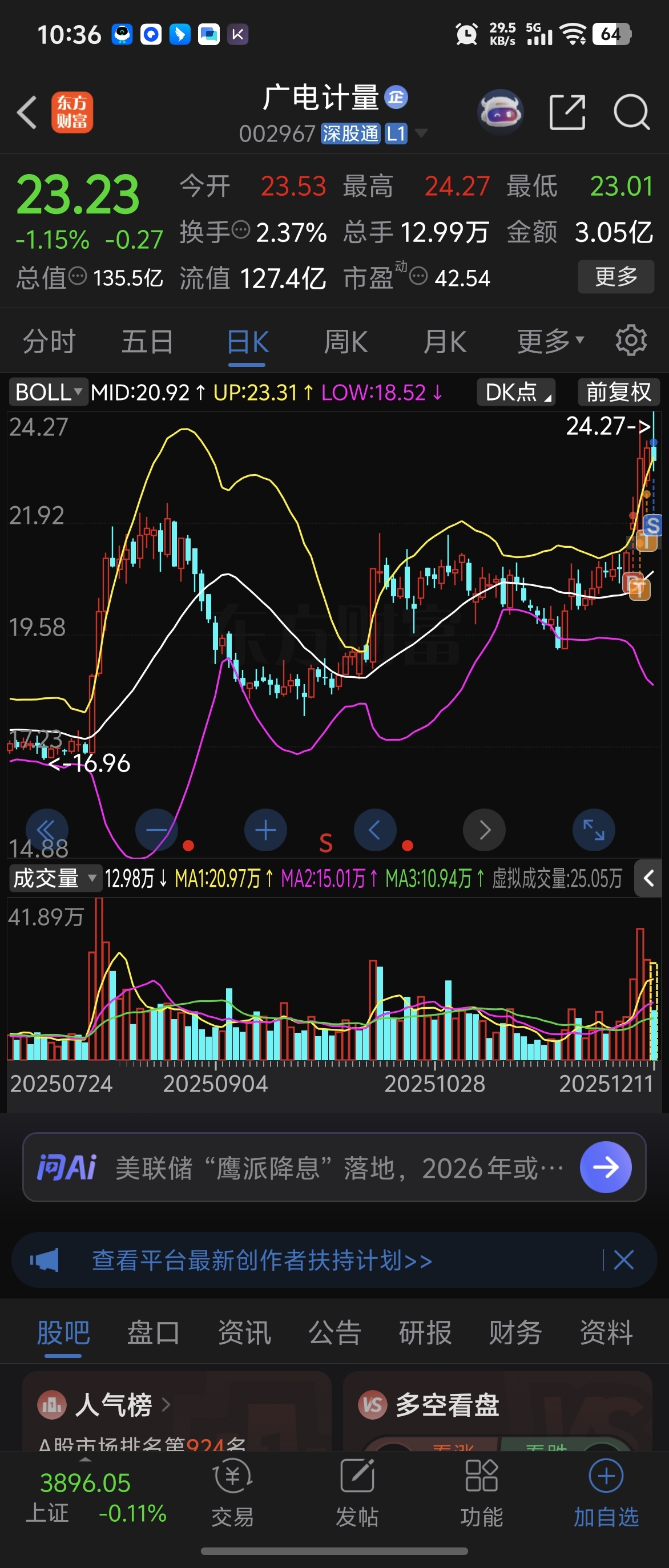 $广电计量(SZ002967)$ 今天没达到预期就撤,祝留下的兄弟发财