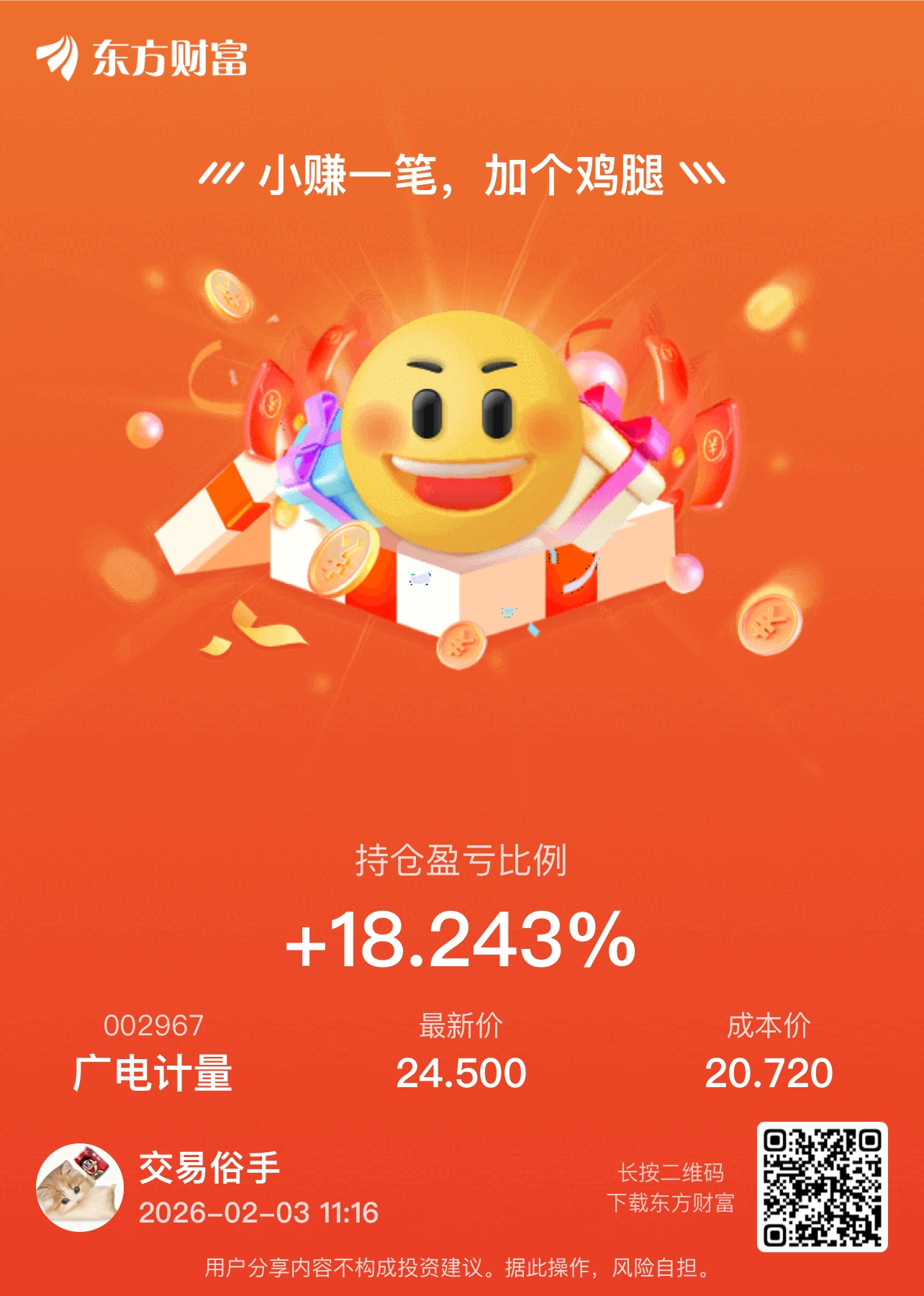 温馨提示: 1.根据《证券法》规定,禁止编造、传播虚假信息或者误导性信息,扰乱证券市场;2.用户在本社区发表的所有资料、言论等仅代表个人观点,与本网站立场无关,不对您构成任何投资建议。用户应基于自己的独立判断,自行决定证券投资并承担相应风险。《东方财富社区管理规定》