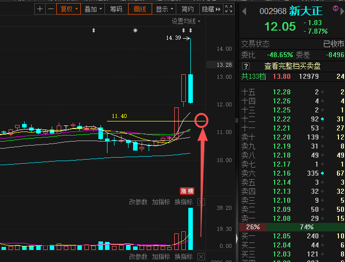 这是三板组的拉升砸盘手法,明日若是大幅低开11.40左右可以小仓位博弈反抽。不易恋战,不易重仓。