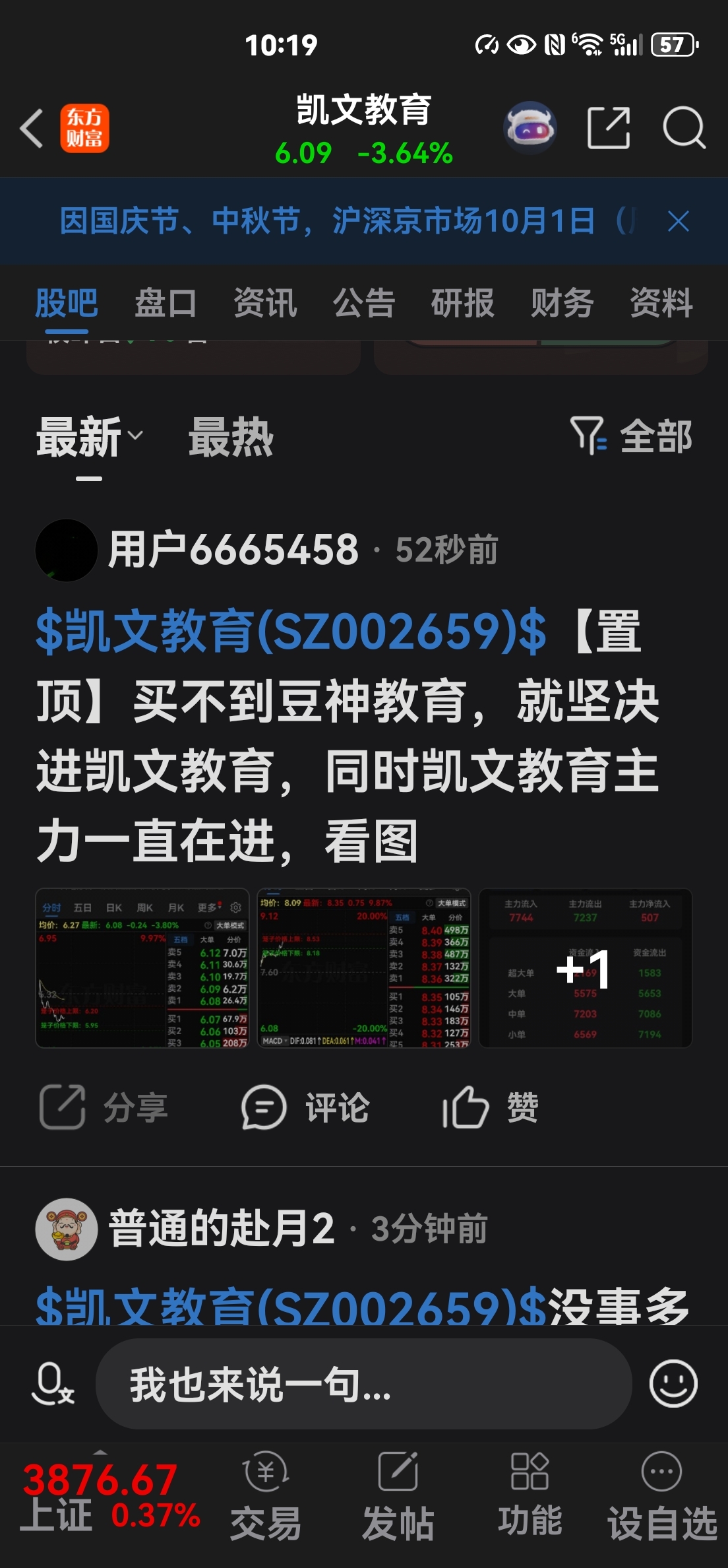 $新大正(SZ002968)$ $豆神教育(SZ300010)$ (置顶)买不到豆神教育,必须抢进凯文教育,凯文教育主力进了三天,虽然今天跌
