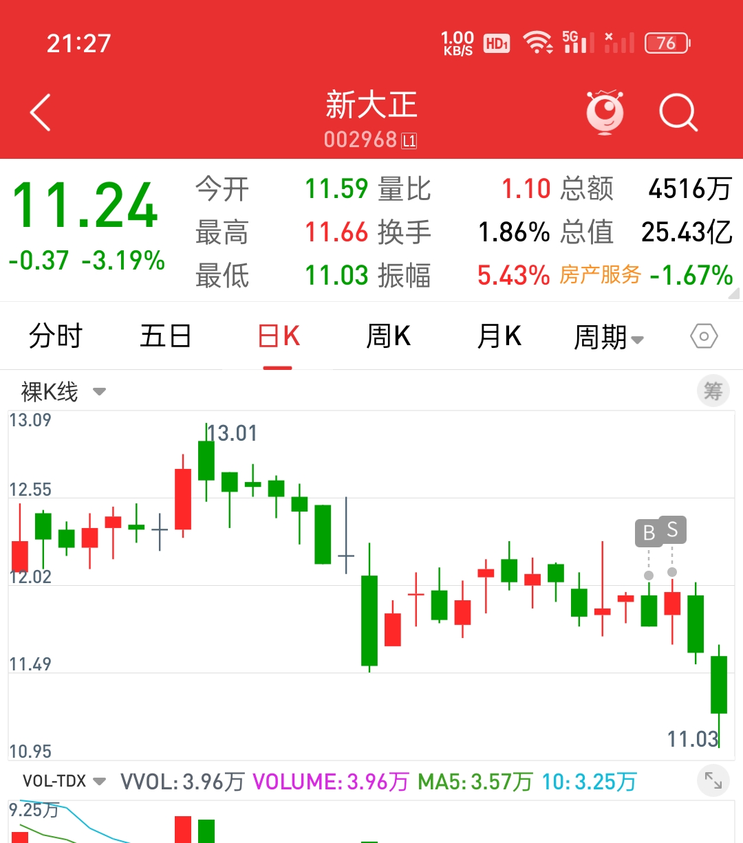 $新大正(SZ002968)$ 幸好跑得快,不然被套了。
