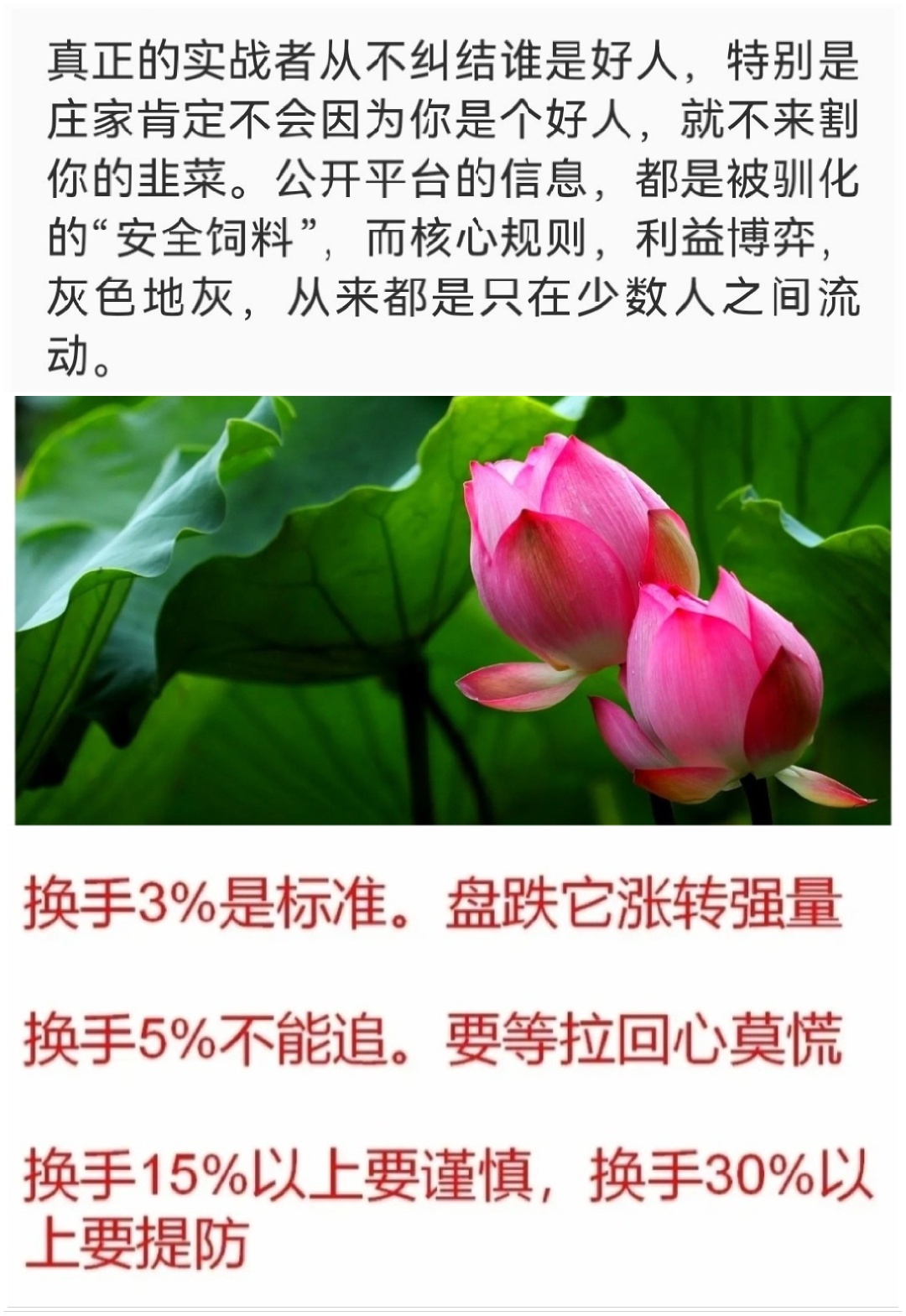 永远不要因为价格因素,来决定买卖的方向,这是心理障碍,一定得克服。因为目前A股股民的平均持股时间为9天,即大多数人都在频繁操作短线交易,而迷失了方向。在实盘博弈中找到同频共振的职业炒手,实则要多幸运才能遇到。但是很少有人能听懂你说话,能够听你说废话的更是少之又少的。