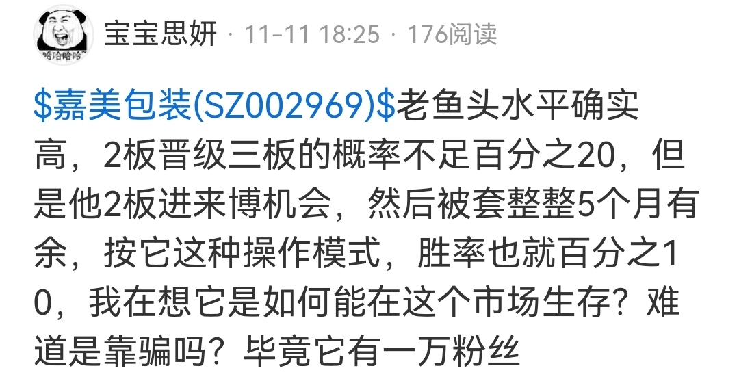 郑重声明:用户在财富号/股吧/博客等社区发表的所有信息(包括但不限于文字、视频、音频、数据及图表)仅代表个人观点,与本网站立场无关,不对您构成任何投资建议,据此操作风险自担。请勿相信代客理财、免费荐股和炒股培训等宣传内容,远离非法证券活动。请勿添加发言用户的手机号码、公众号、微博、微信及QQ等信息,谨防上当受骗!