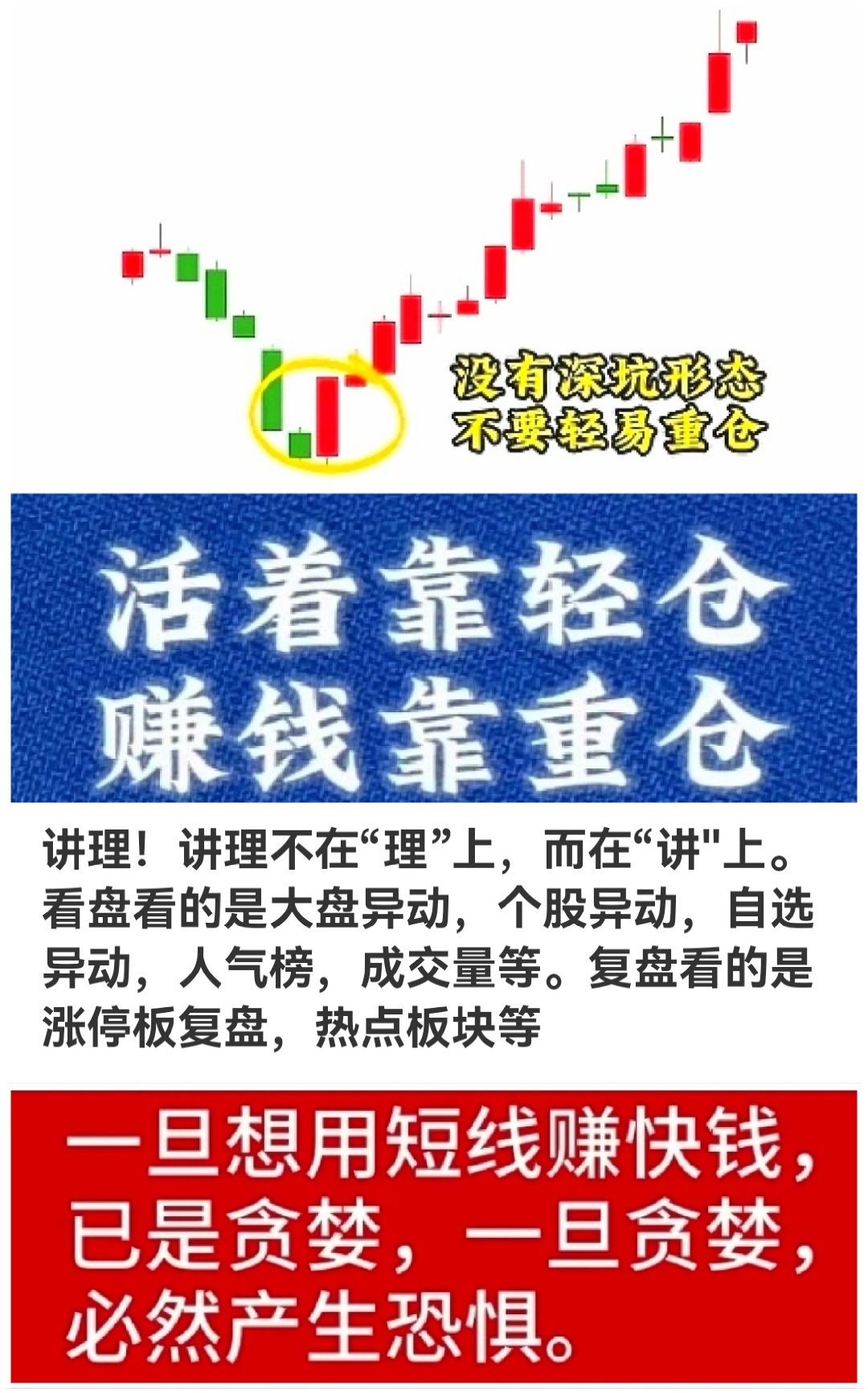 讲理!讲理不在“理”上,而在“讲"上。看盘看的是大盘异动,个股异动,自选异动,人气榜,成交量等。复盘看的是涨停板复盘,热点板块等
