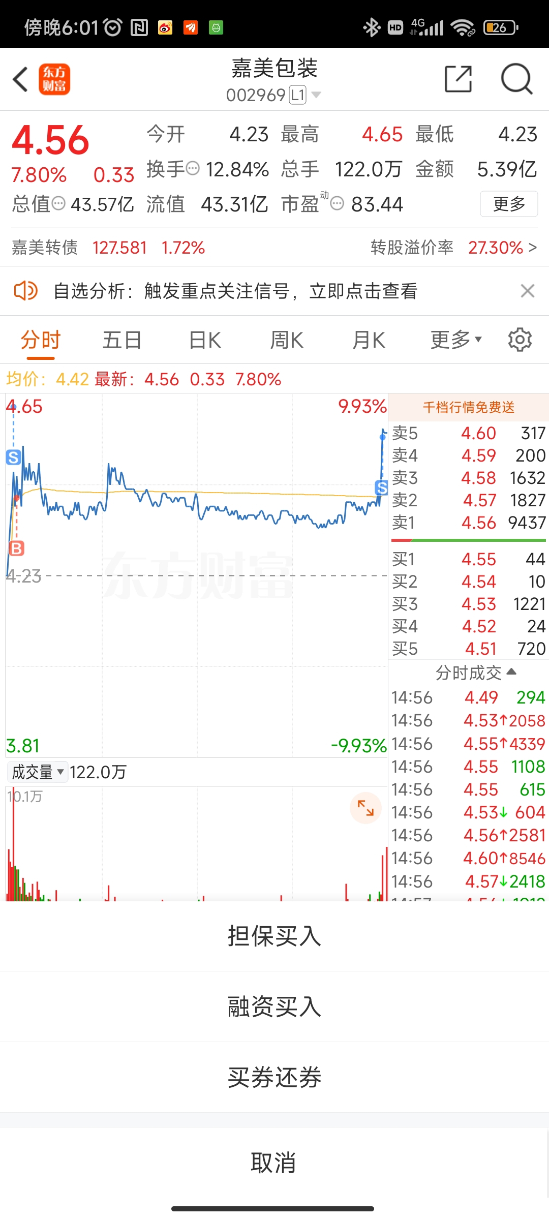 $嘉美包装(SZ002969)$ 早盘卖少了。赶紧接了回来。尾盘又卖了一点儿,明天要是给机会还想再接回来一点儿。