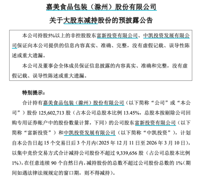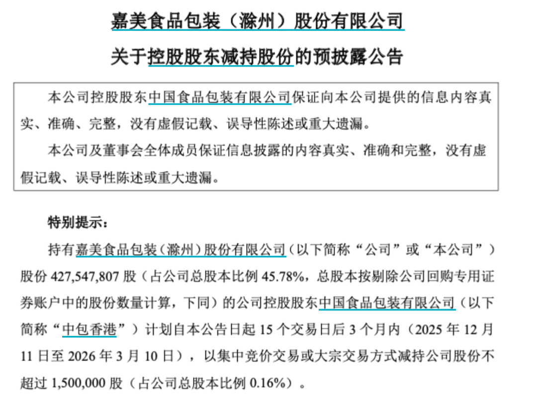 12月9日,嘉美包装公告称,公司控股股东中包香港正在筹划控制权变更事宜,可能导致公司实际控制人发生变更。经申请,公司股票自2025年12月10日开市起停牌,预计不超过2个交易日。目前事项尚处于意向阶段,存在重大不确定性。