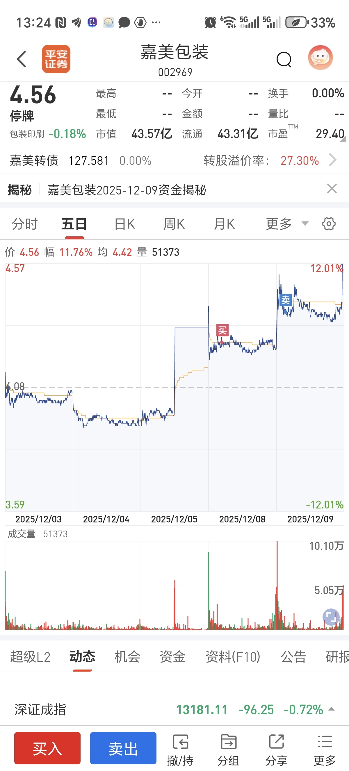 $嘉美包装(SZ002969)$ 我还说今天接回来呢