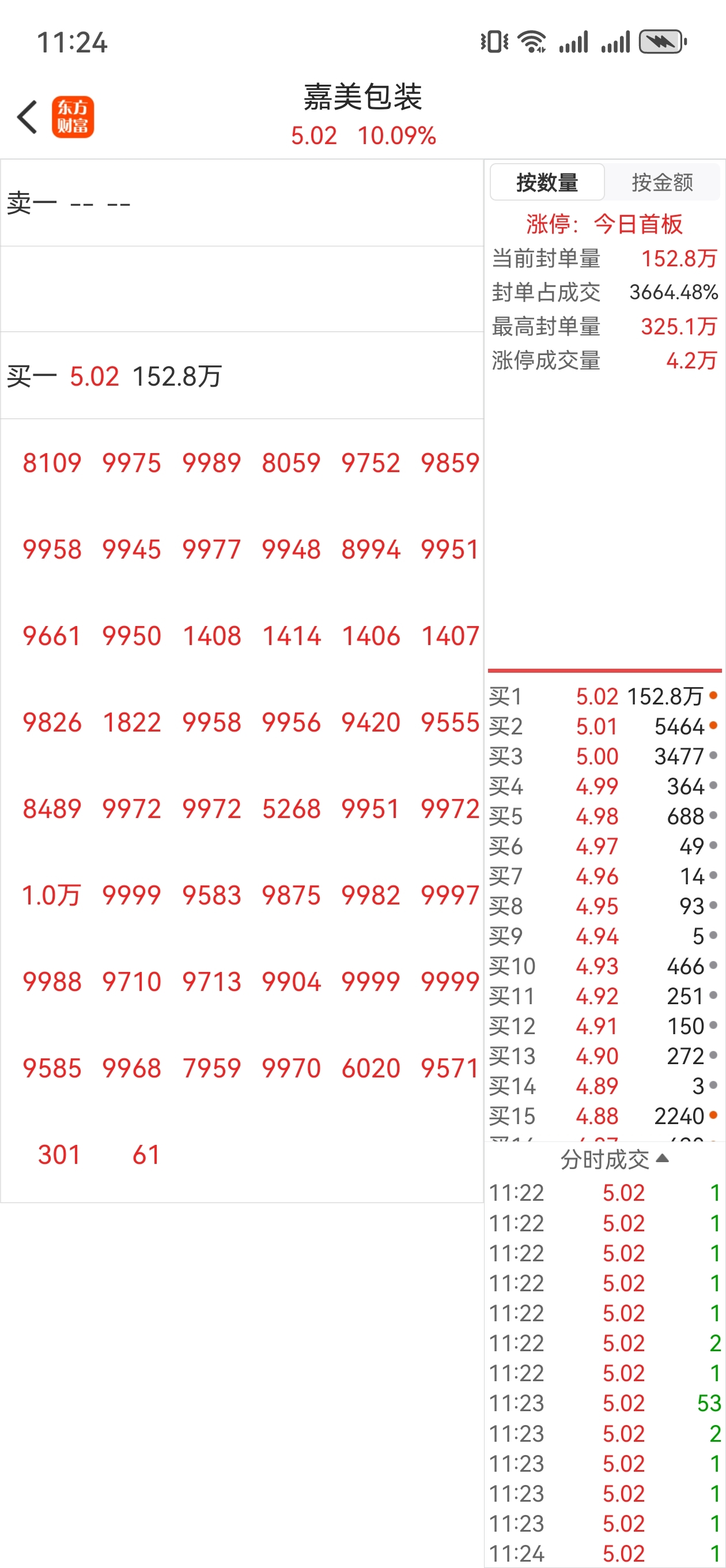 $嘉美包装(SZ002969)$ 不用排了,根本进不去