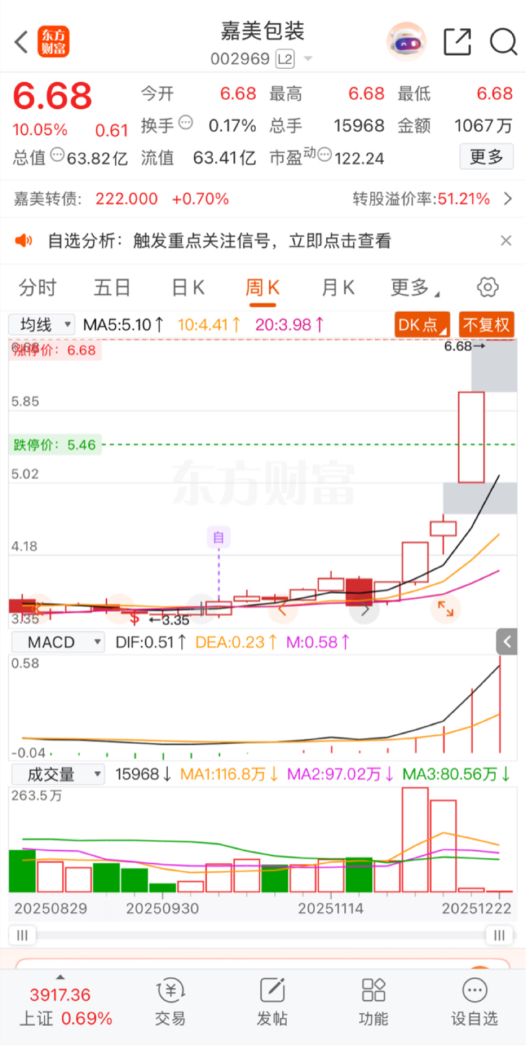 $嘉美包装(SZ002969)$ 明天就翻倍了,加油哦