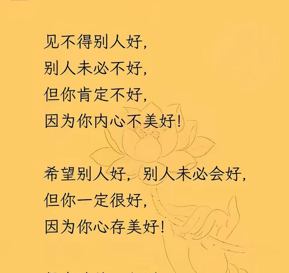 见不得别人好,别人未必不好,但你肯定不好,因为你内心不美好;希望别人好,别人未必