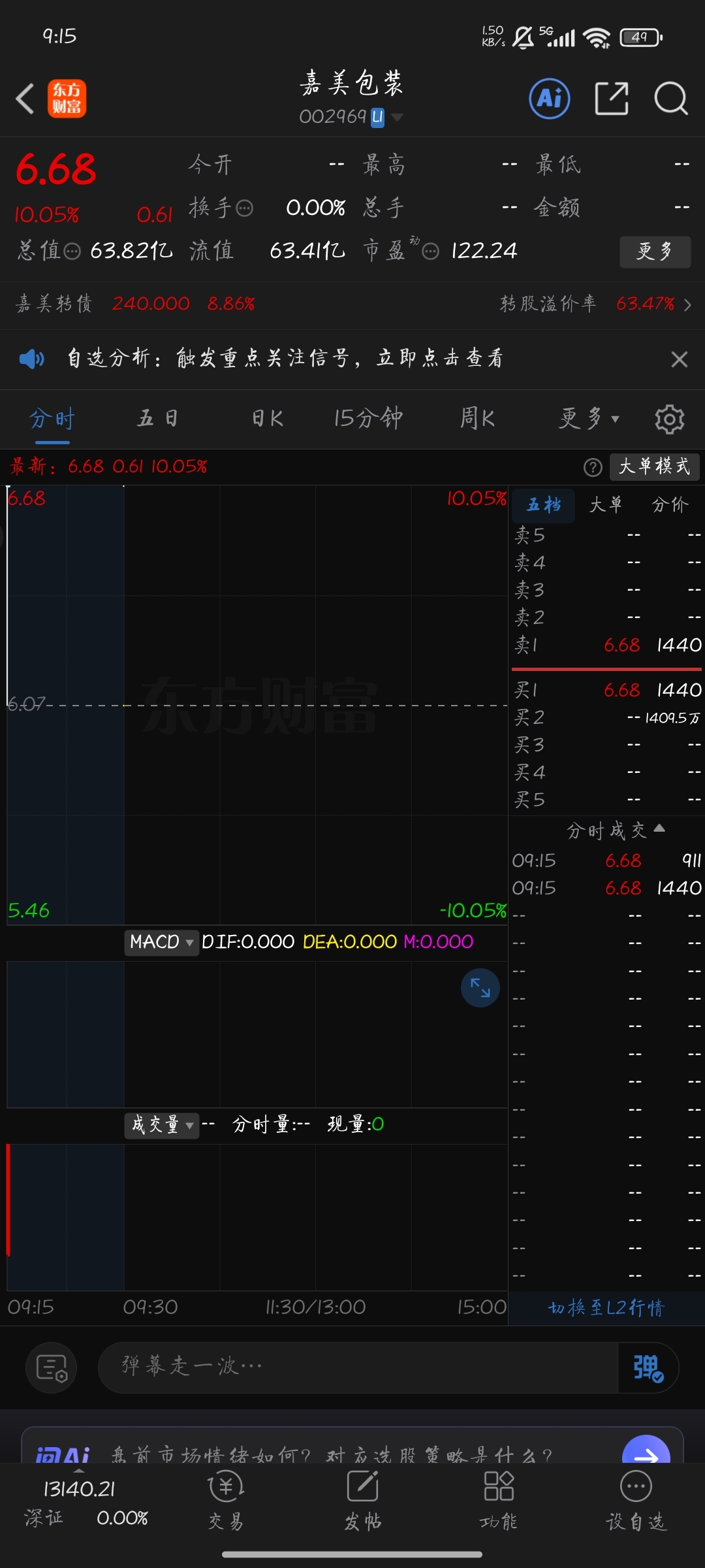 复牌第一天竞价封单快一百亿,昨天竞价封单又快一百亿,基本在市值150亿前是不会开