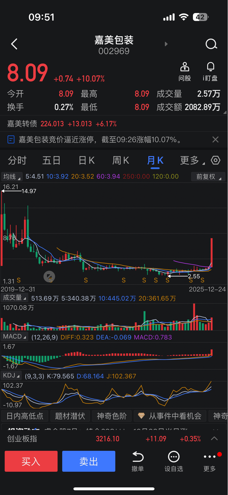 慌什么呢你们,但凡只要俞总组装个车出来“不需要真造”,你们说股价会怎样。何况俞浩是真要造车,还要造对标:布加迪的世界名车!!!现在10块不到,就算到30~50块它高吗,搞不好要到200~300块!人家又不是脑袋长花,花23亿来股市消费的。嘉美包装的持股策略就是:但凡调整就重仓,直至第一台车下线清仓!!!自己慢慢悟吧。