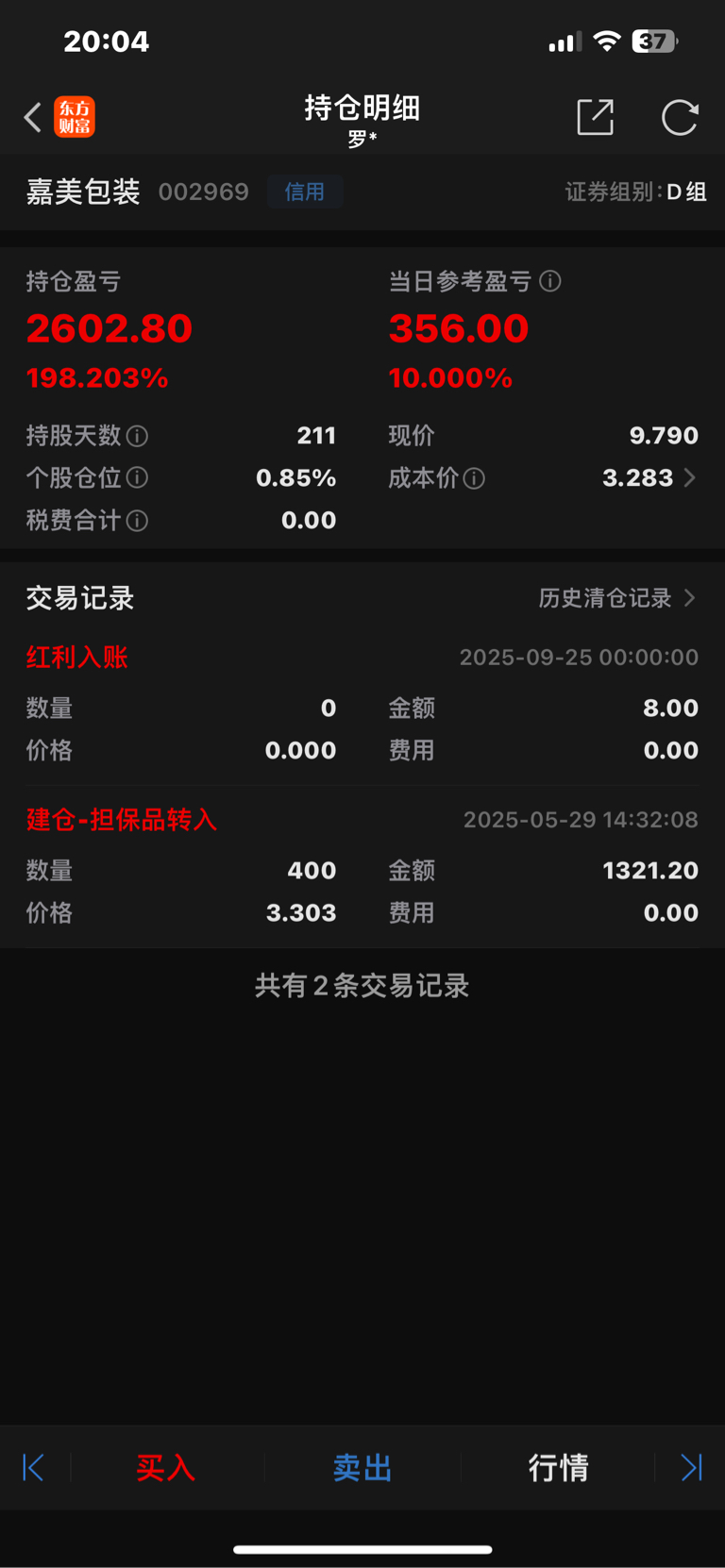 $嘉美包装(SZ002969)$ 3.3元买入的,年货到手了